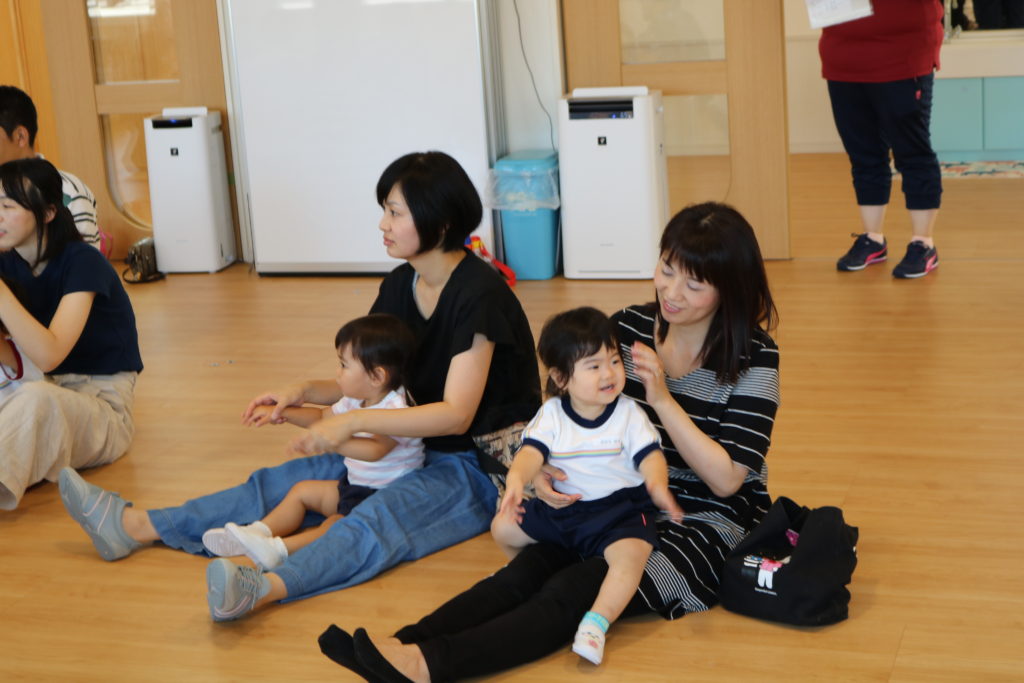 馴染み深い童謡の曲に合わせて、体を動かしたり、お家の方に