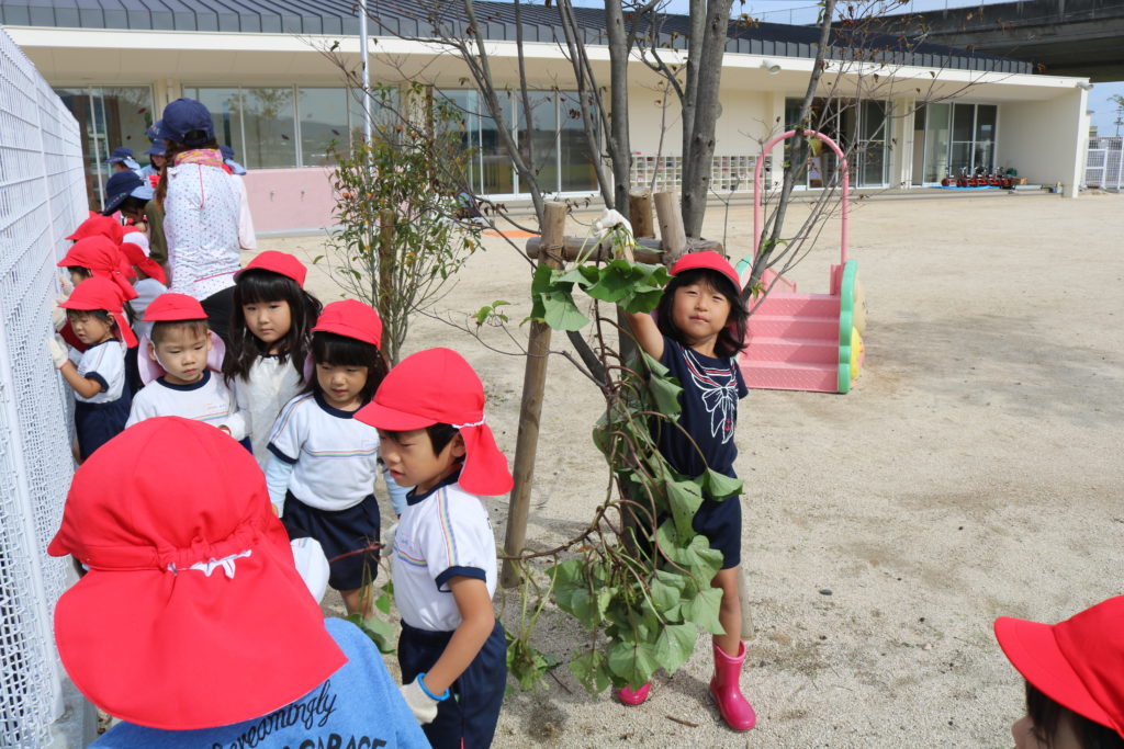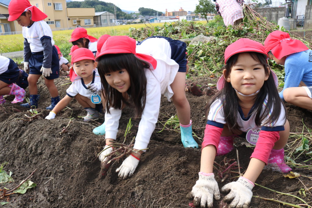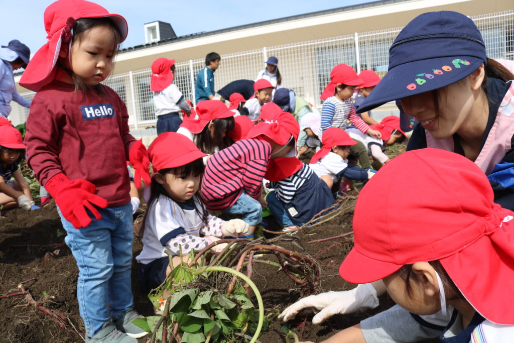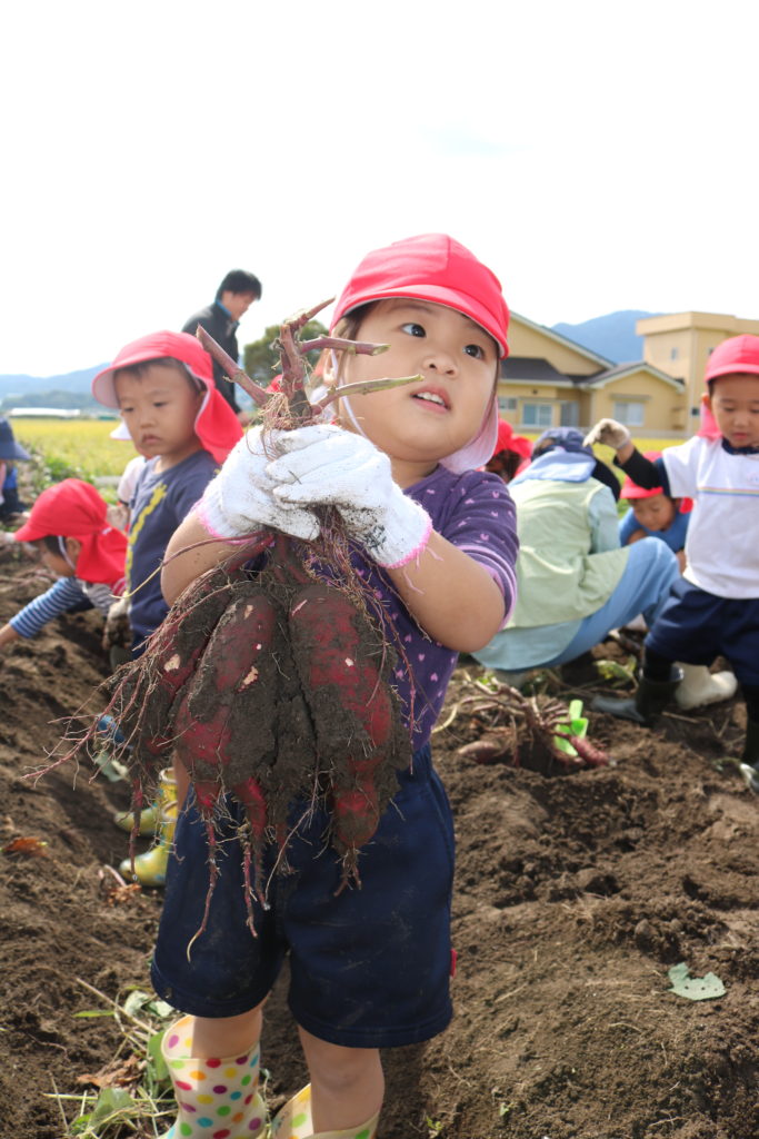 いもほり 稙田ほまれ保育園の畑で、大切に育てたさつま芋をほりました。 お家の方が準備してくださった軍手を付け、長靴をはいて準備万端(^_-)-☆ つるはどんな風になっているのかな、いもはどこから出てくるのかなとじっくり観察し、 どんどん掘り進めました。 大きなお芋が掘れて、みんな大喜び!! 一覧へ戻る