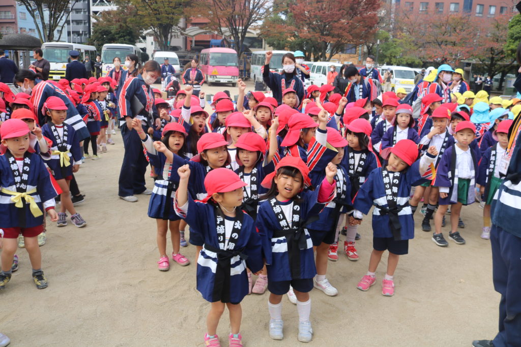 4歳児さんも拍子木を持ち、「火の用心」を呼びかけました。