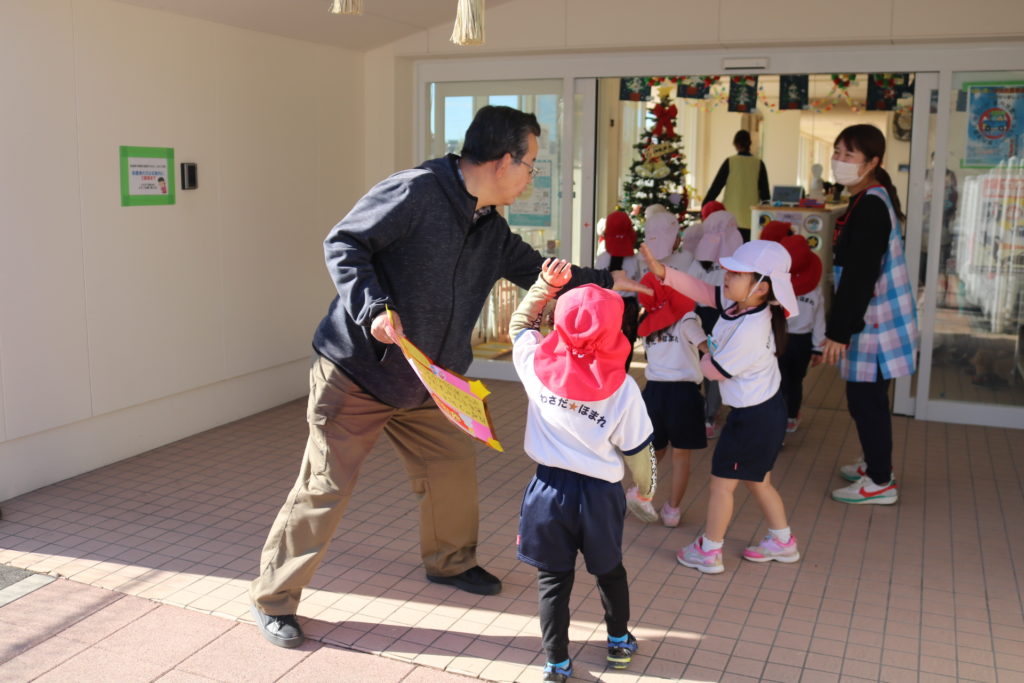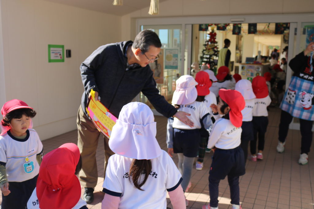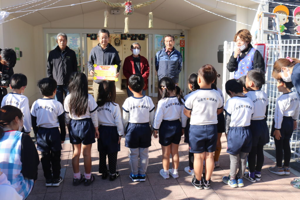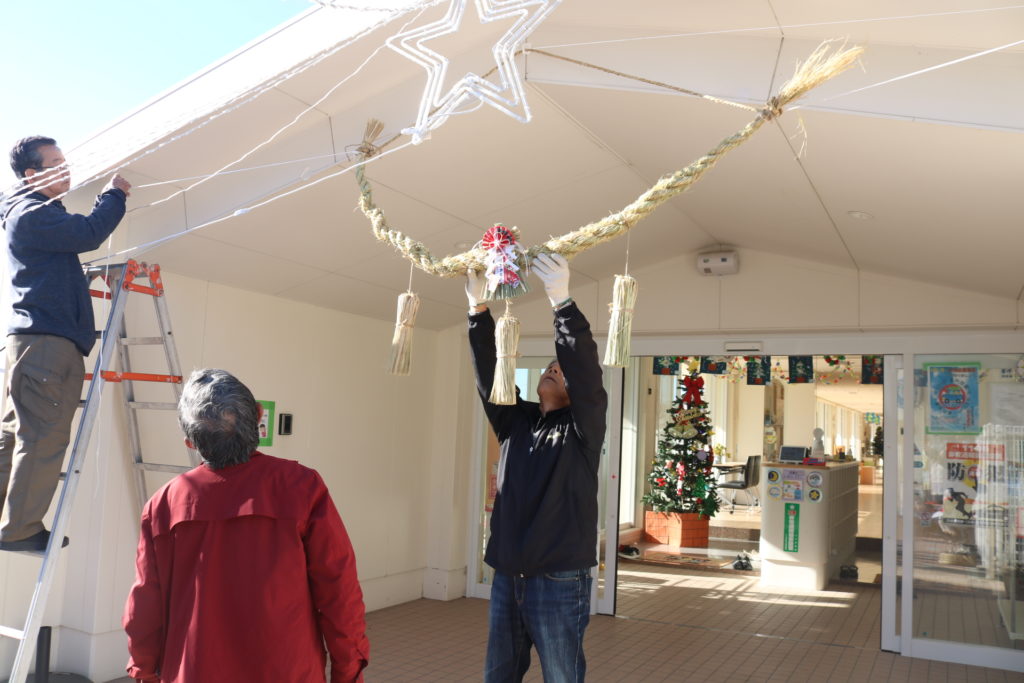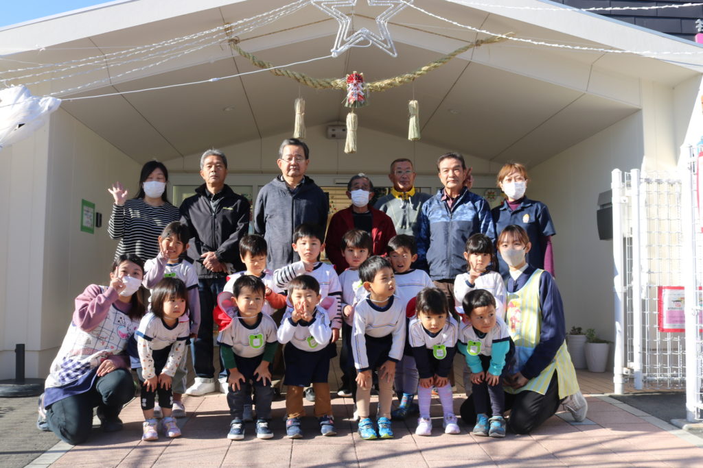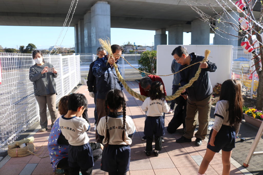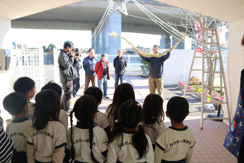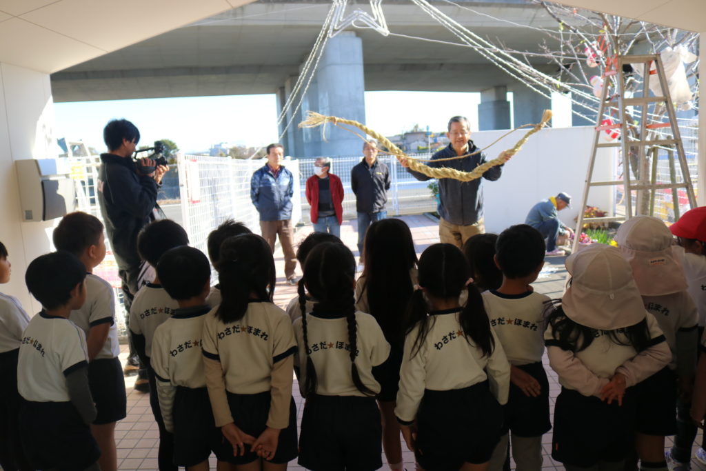 今日は上宗方自治会の方々が正月飾りのしめ縄を届けてくださり、みんなで見学をしました。