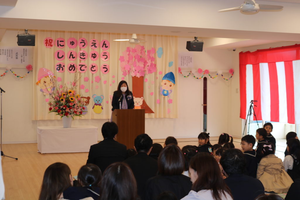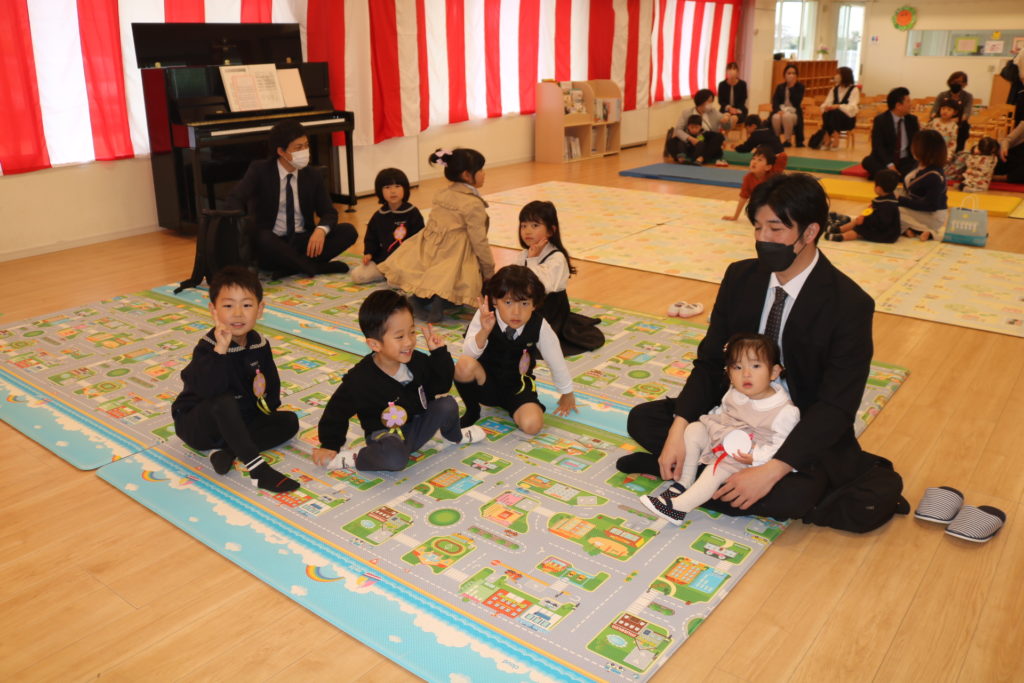 入園・進級式が始まると、真剣な表情で園長先生の話を聞いたり、クラス担任の発表を聞いたりしながら、これから始まる1年間に期待を膨らませていました。