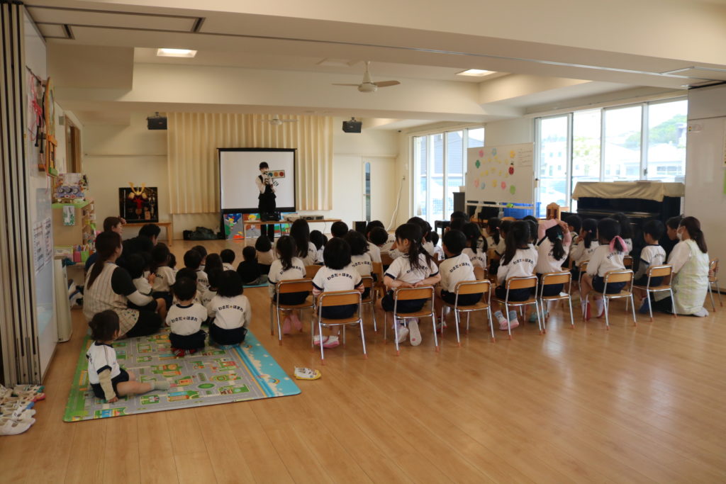 春の交通安全教室に参加しました。信号機の色の意味や、道路を横断する際に気をつけることなどを、分かりやすく教えていただきました。4歳児・5歳児さんは何度も教えてもらっているので、赤は止まれ、青は進め、黄色は注意して止まれという違いをよく理解していました。