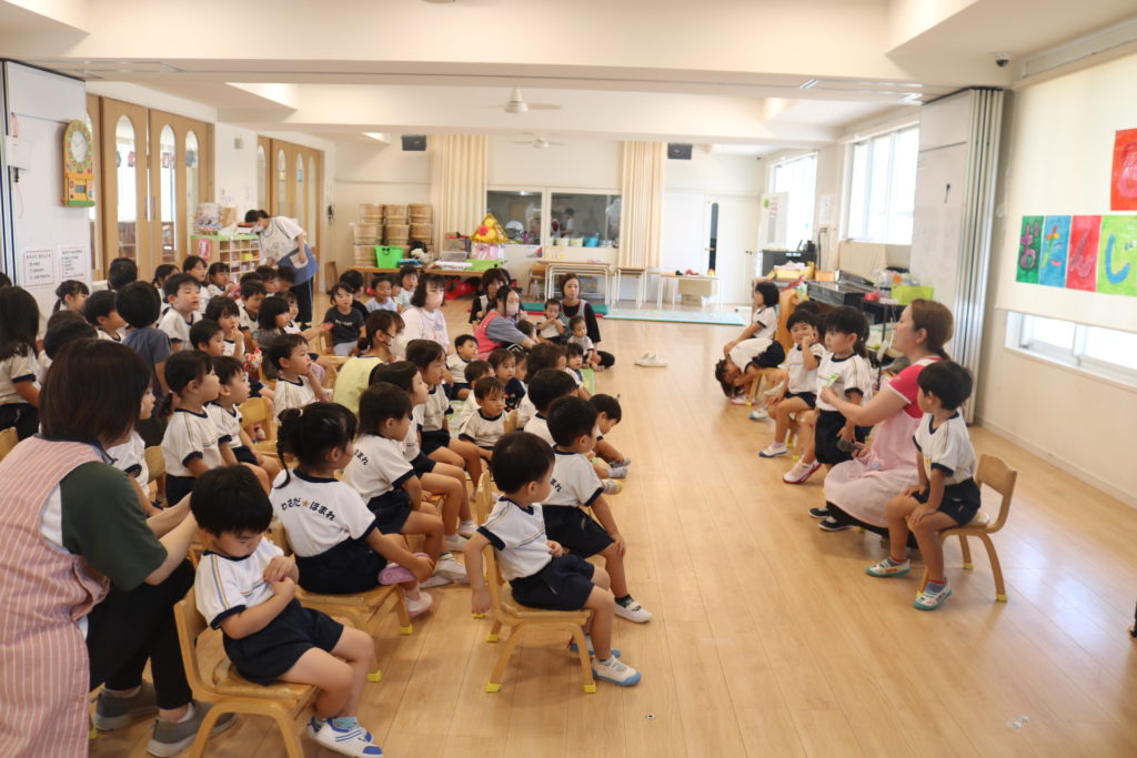令和6年度 8月の誕生日会を行いました。今月は9人のお友だちが誕生日を迎えます。