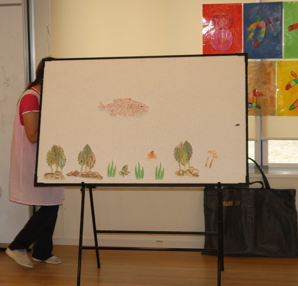 “スイミー”では、「みんなで泳いだら大きい魚逃げたね~」と発言する子もいて、『1人では難しいことも仲間や友だちと協力すれば成功する』ということを学びました。