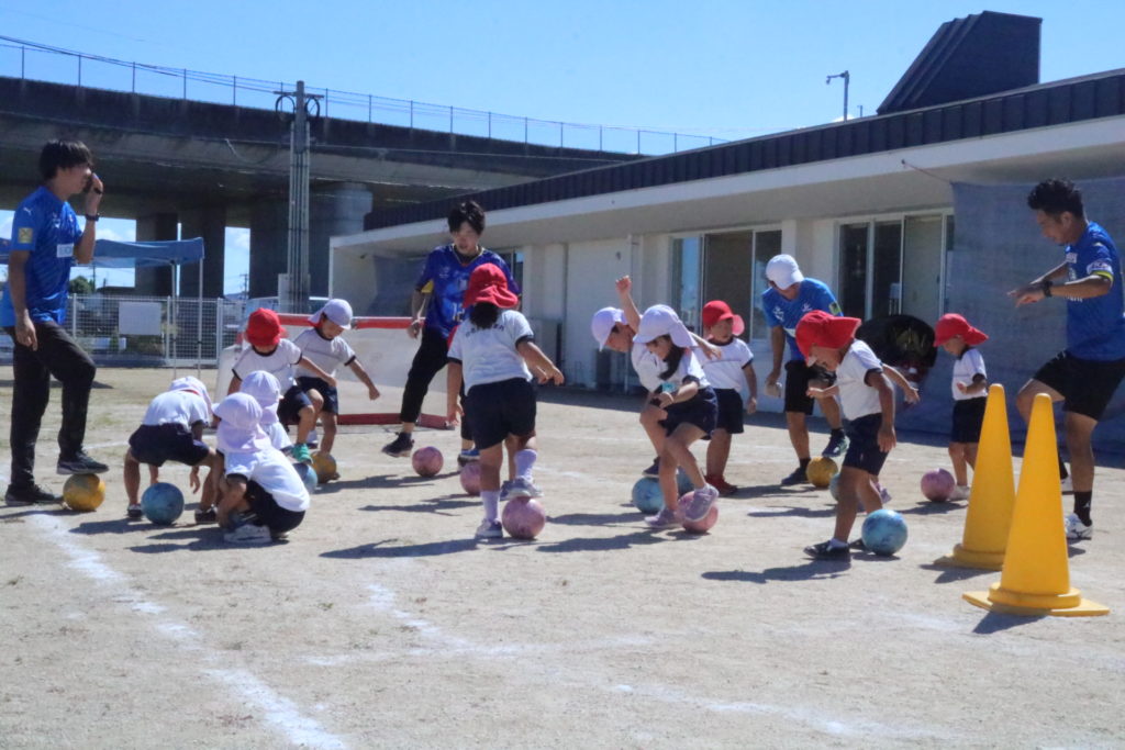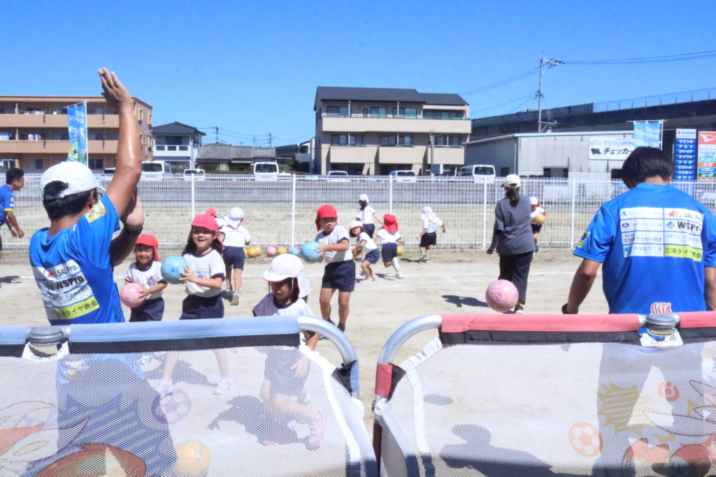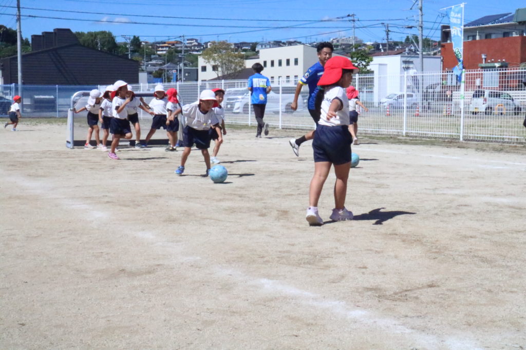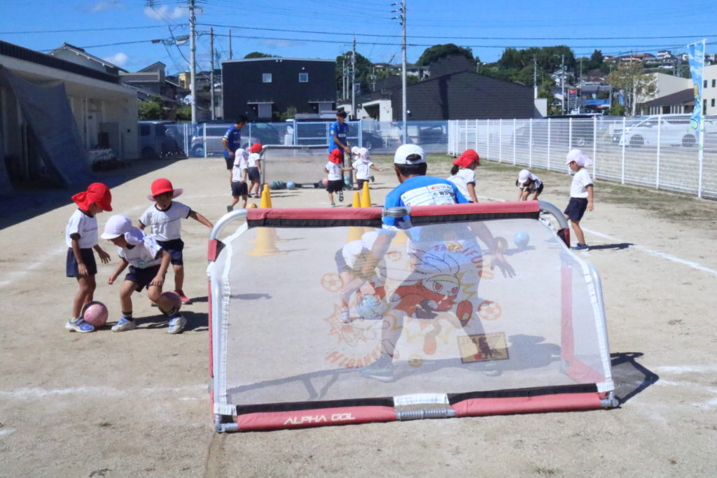 キッズサッカー キッズサッカーでは、トリニータのコーチの方達がこられ、子ども達にサッカーだけではなく、体を動かす気持ちよさ、運動する楽しさを伝えてくれました。 子ども達は笑顔いっぱいで参加し、赤チーム白チームにわかれると、しぜんと円陣をくみ「頑張るぞー!えい、えい、おおおー!」と気合い入れサッカーの試合にのぞんでいました。勝っても負けても楽しい活動が出来ました。 一覧へ戻る