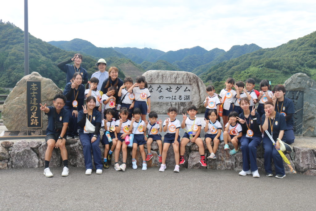 ななせダムでは、大雨が降った時などに川の水が溢れないようにしたり、雨が降らない日が続いた時のために水を溜めたりし、水の量を調節する役目があることを知りました。地元にこんなに大きなダムがあることも知り、驚きの表情を見せる子どもたちでした。