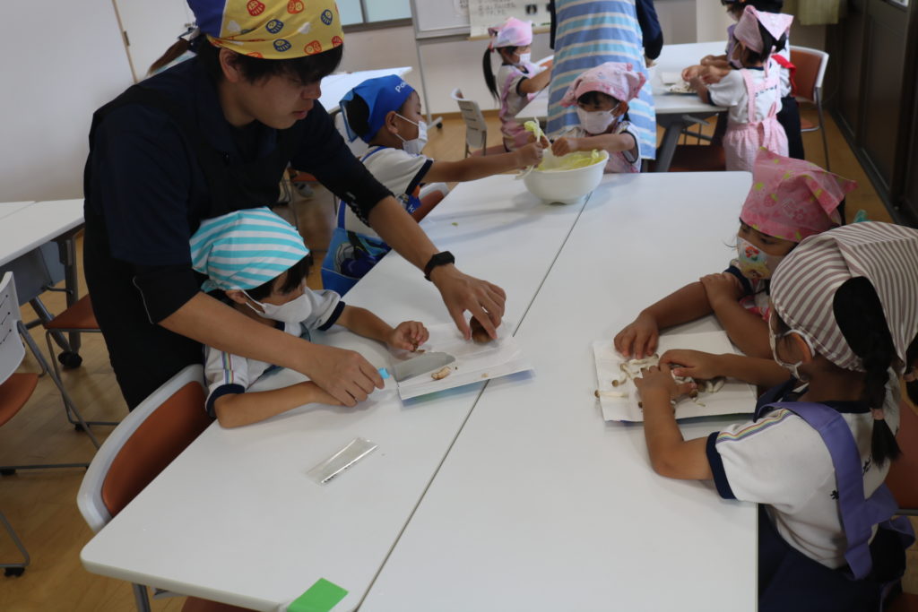 クッキングやキャンプファイヤーもとても楽しみにしていたので、終始笑顔で取り組んだ子どもたちです。二日目の朝食バイキングでは、嬉しそうに好きなおかずをとりに行き、何度もおかわりをしにいっていました。おいしそうなご飯を前に、目を輝かせる姿はなんとも可愛らしかったですよ♪