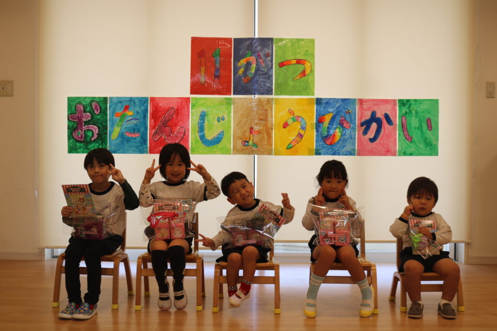 令和6年度 11月の誕生日会を行いました。今月は5人の友だちが誕生日を迎えます。