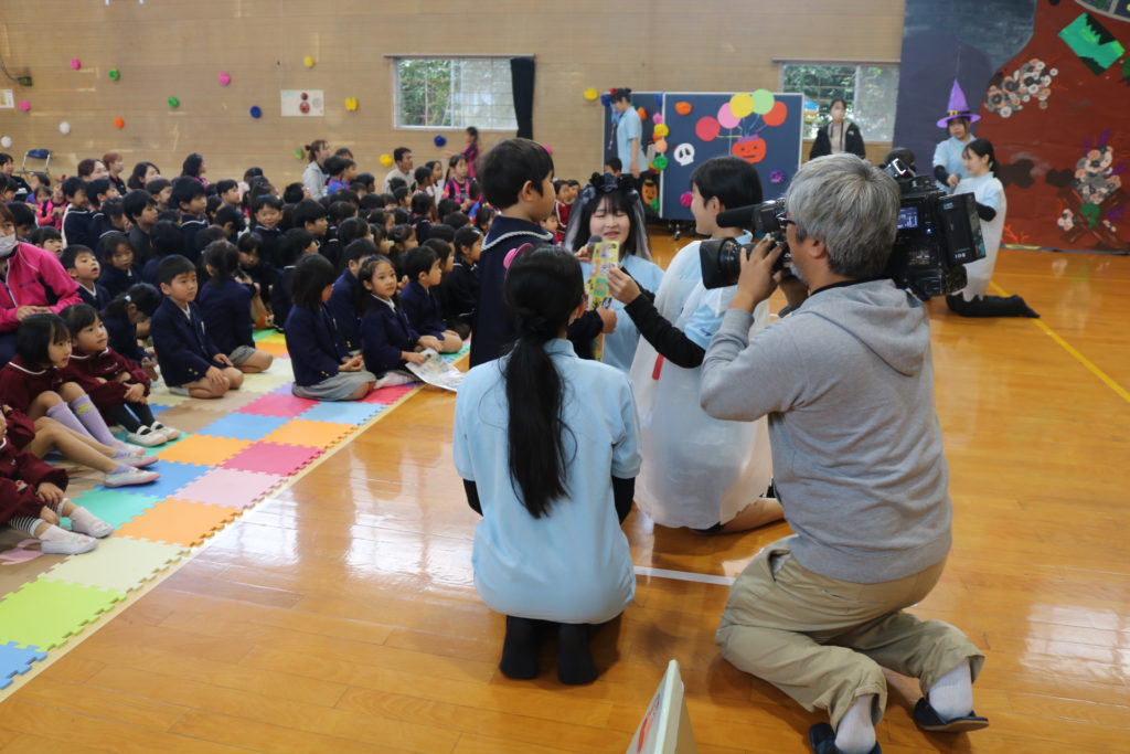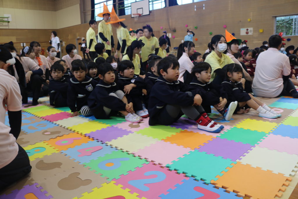 ハロウィンのおばけも登場し、おばけたちが折った折り紙のプレゼントももらいました。怖いおばけだけじゃなく、子どもたちのことが大好きなおばけもいるんだよ~と言われ、安心してニコニコ笑顔で受け取っていました。