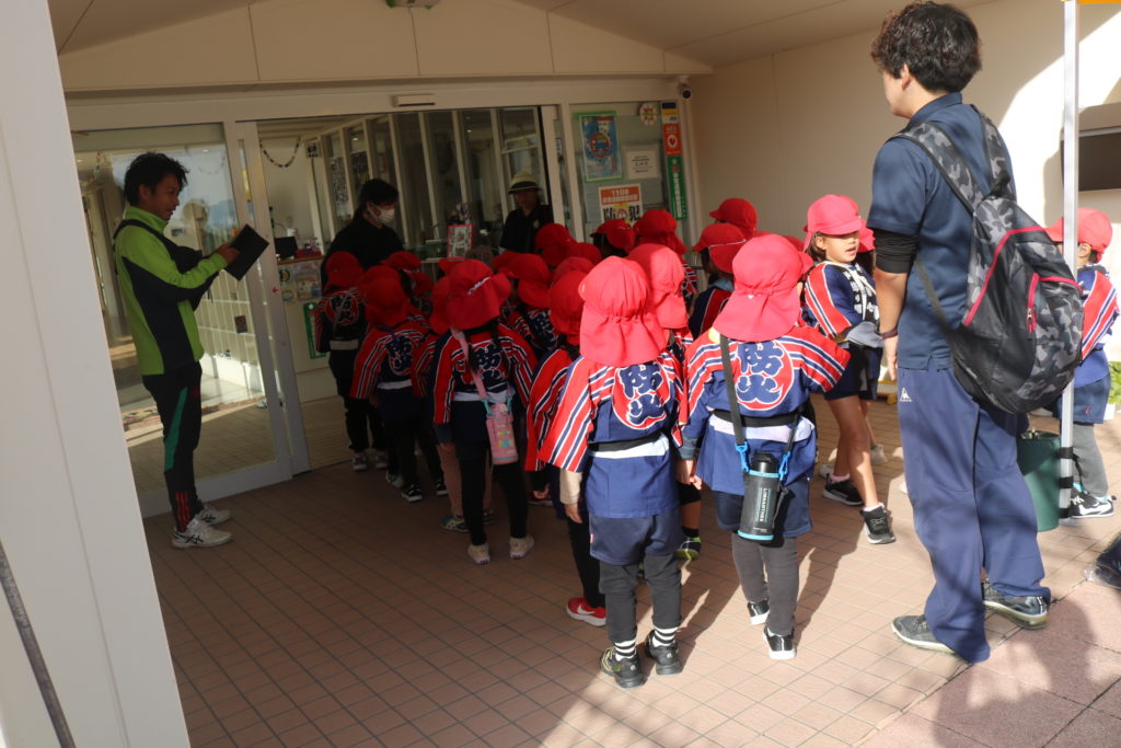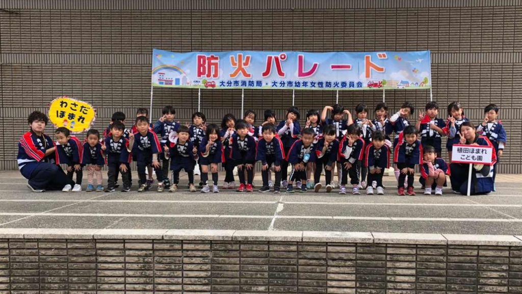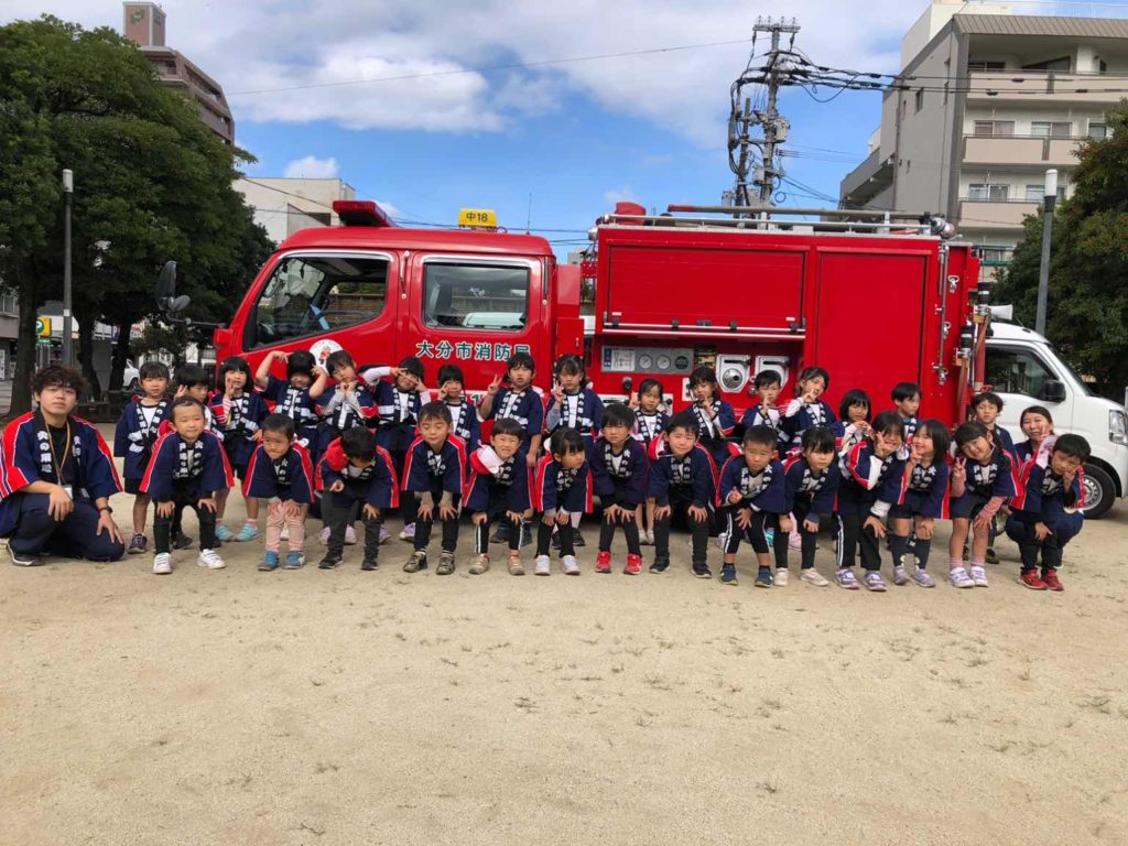 令和6年 11月8日(金) 秋の火災運動として防火意識の向上や火災のないまちづくりを目的とする、大分市消防局主催の防火パレードに、4歳児(つき組)・5歳児(にじ組)が参加してきました。