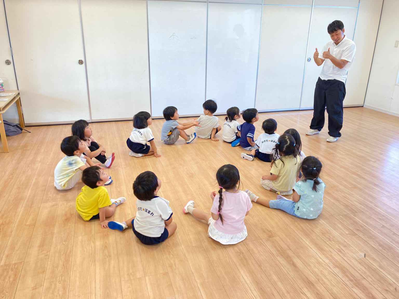 子どもたちにも伝わりやすいよう、大きなジェスチャーを交えながら、簡単な単語で伝えてくれる先生です。