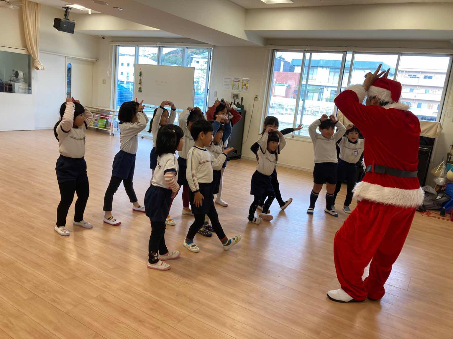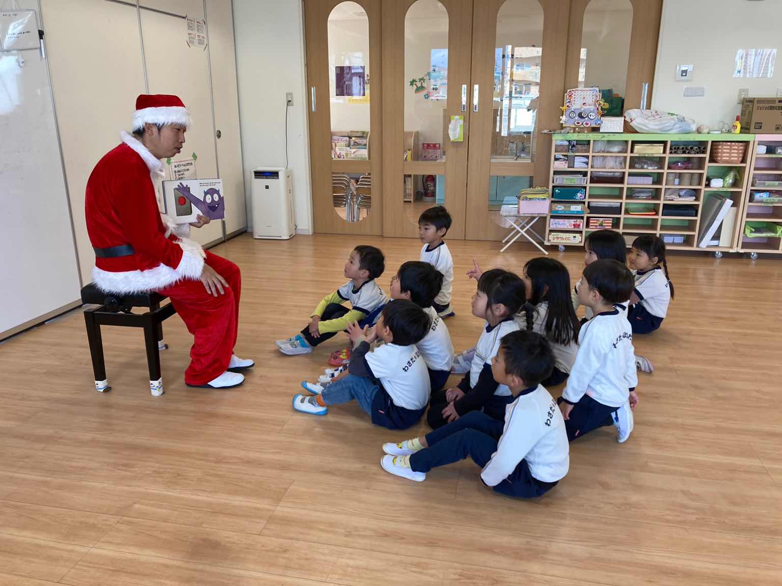 12月には、毎年サンタクロースの衣装を着て来てくれるので、「サンタさんが来た!!」と子どもたちも大喜び!!