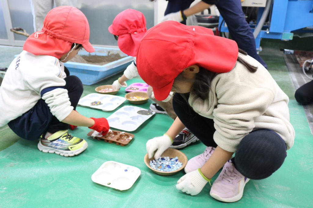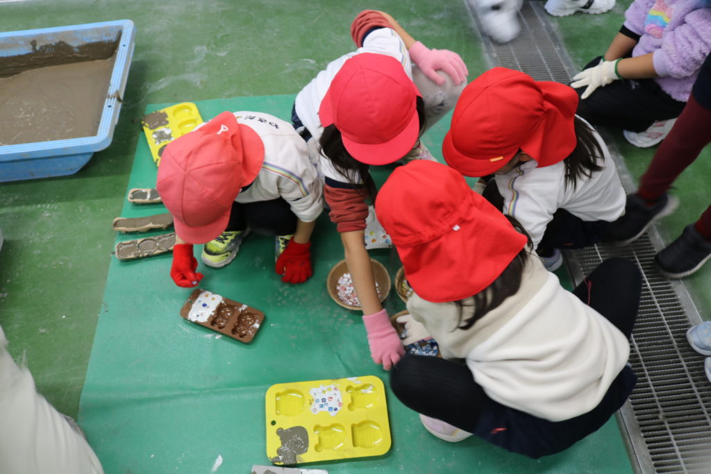 できあがった生コンクリートをキャラクターの型に入れる体験もさせていただきました。色も何色か用意して頂いていて好きな色、好きなキャラクターを選んでコンクリートを流し込みました。