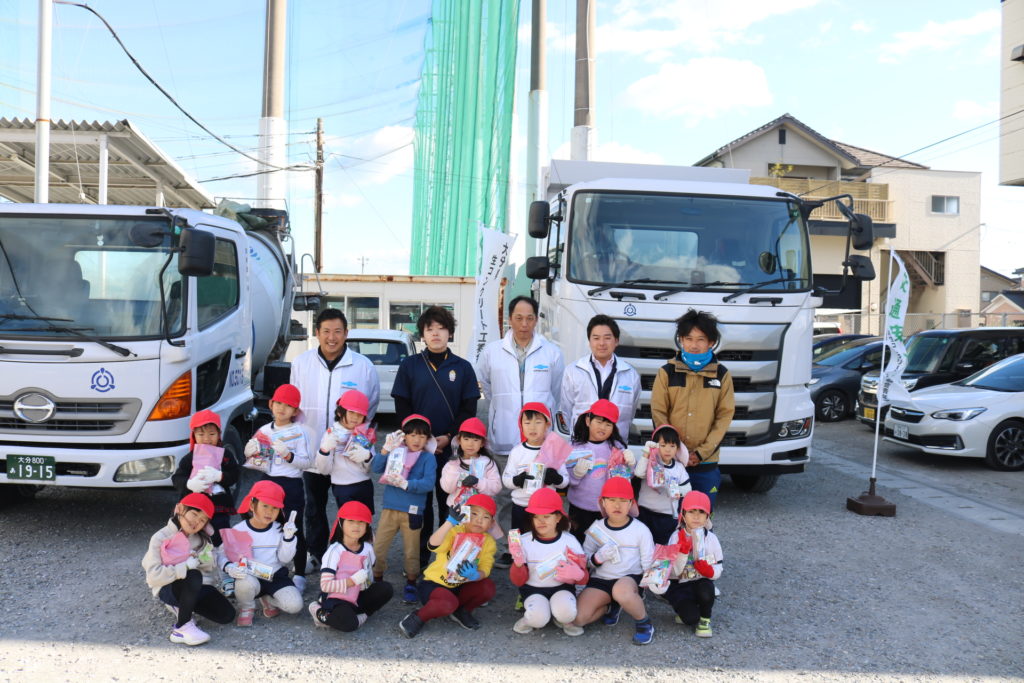 生コンの工場まで行き、間近でコンクリートミキサー車を見た子どもたちの目はとても輝いていました。
