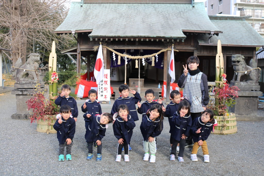 そして、令和7年 1月7日(火)に 園の近くにある稙田大明神まで初詣にいってきました。