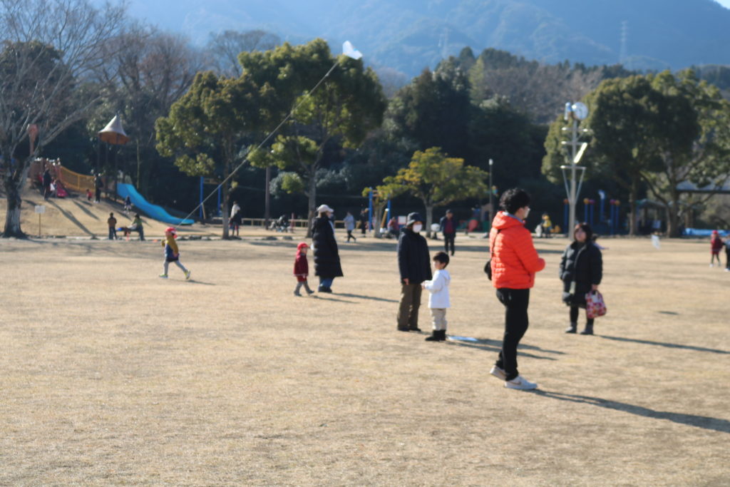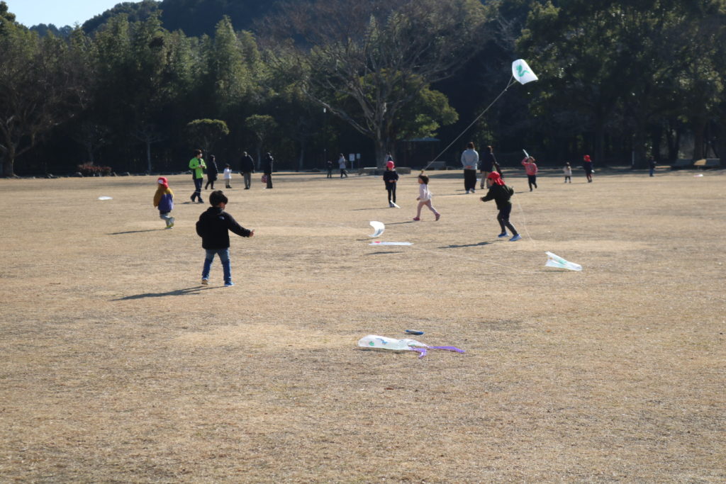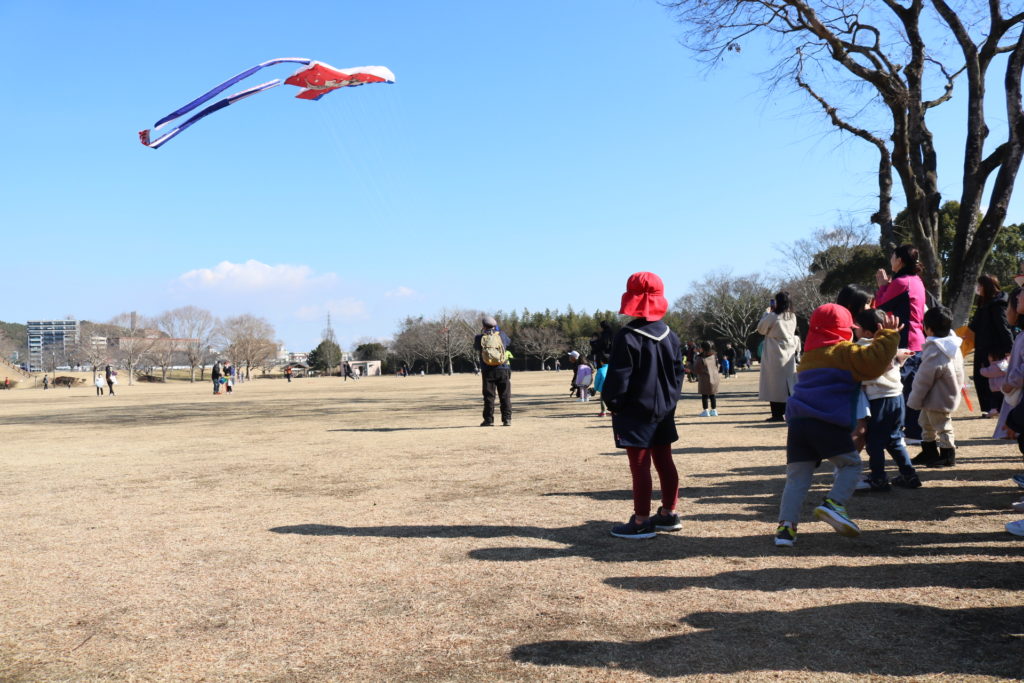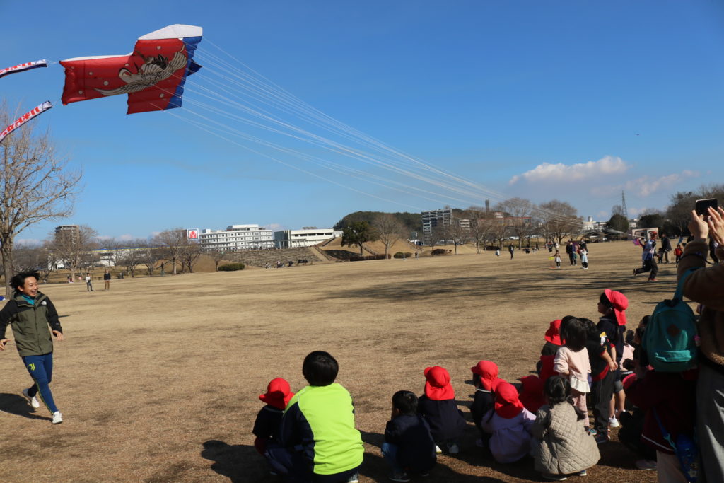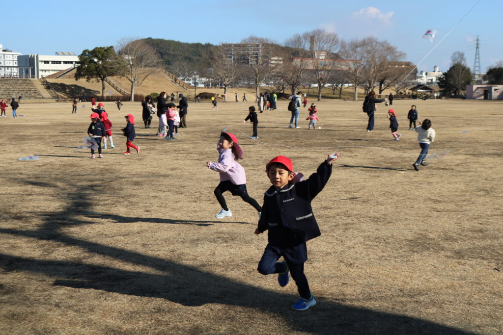 園をお休みしていたお友だちも、保護者の方と遊びに来てくれて、親子で一緒に凧を飛ばして遊ぶ微笑ましい姿も見ることができました。