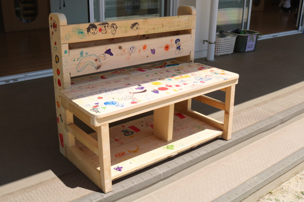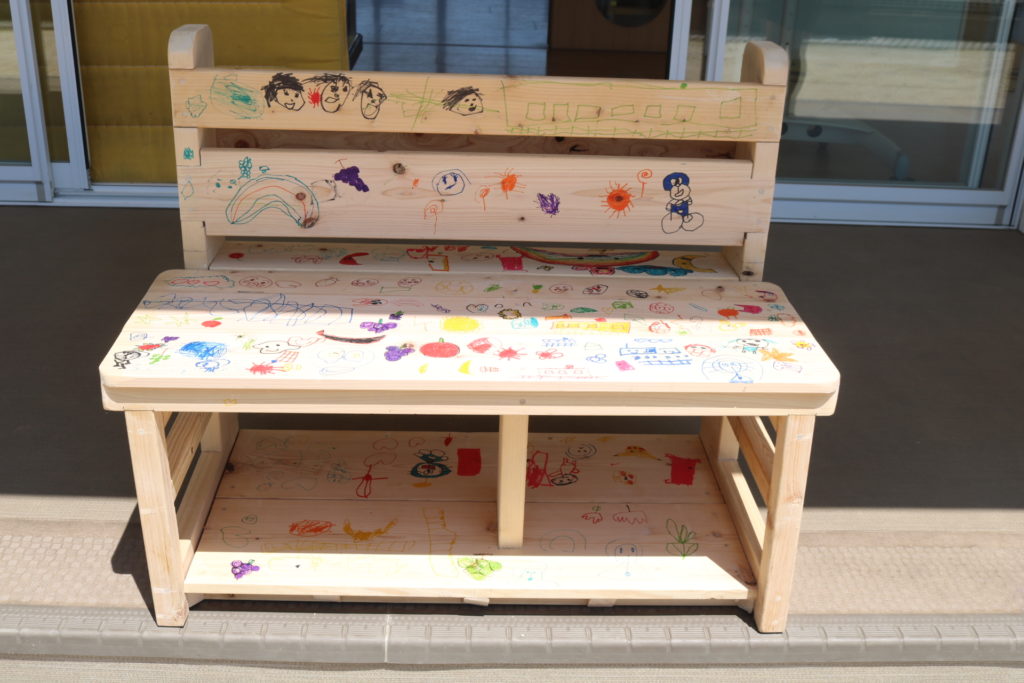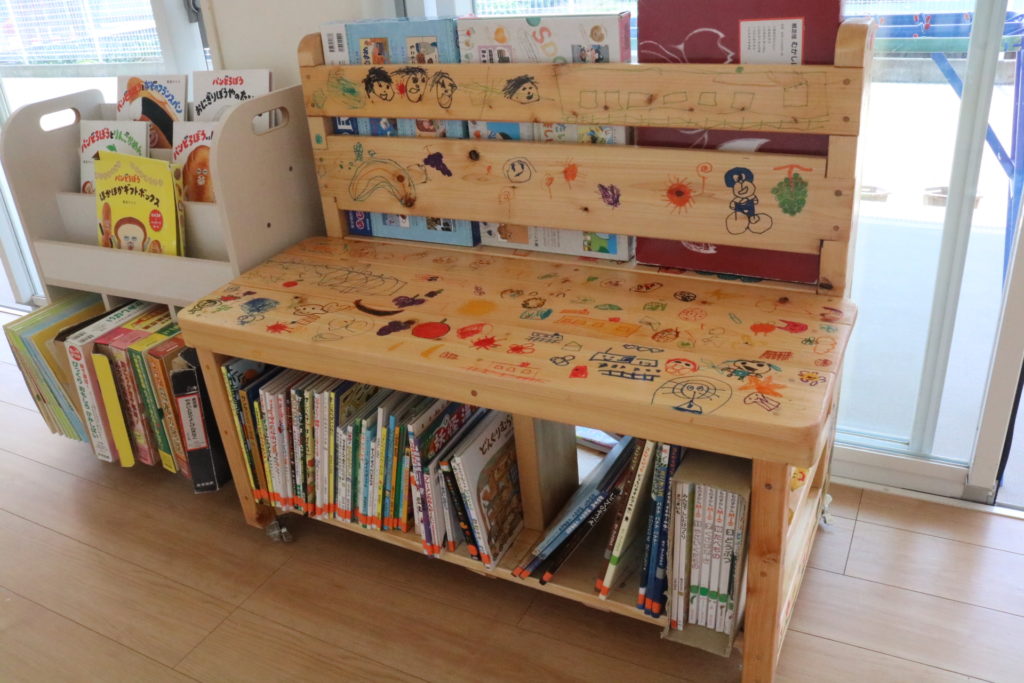 保育教諭が子ども達に読み聞かせをする時や、子ども達の絵本を直すのに、環境整備の田﨑先生が子ども達と先生達の為に椅子の形をした絵本棚を作ってくれました。この絵本棚に、にじ組の年長さん達が、可愛く絵を描いてくれ、★素敵な絵本棚が出来上がりました★今後も、たくさんの絵本に出会って絵本の魅力や絵本の世界を楽しめるように、読み聞かせを子ども達にしていきたいと思います。