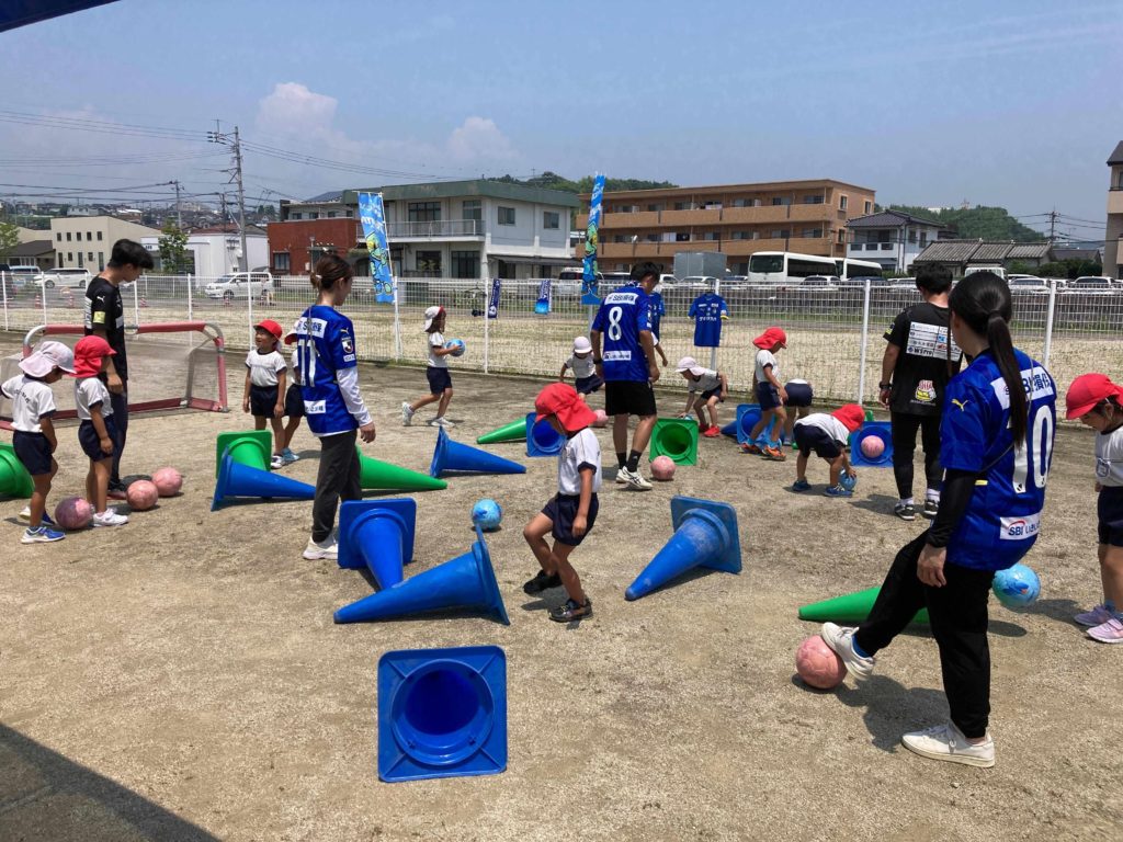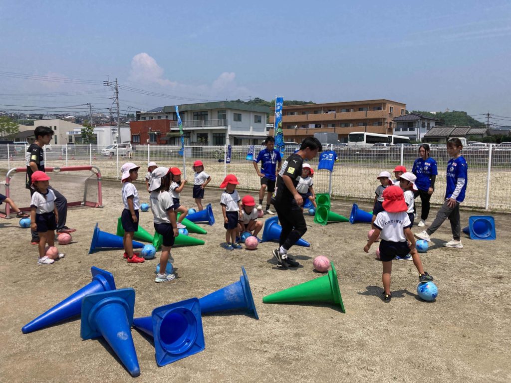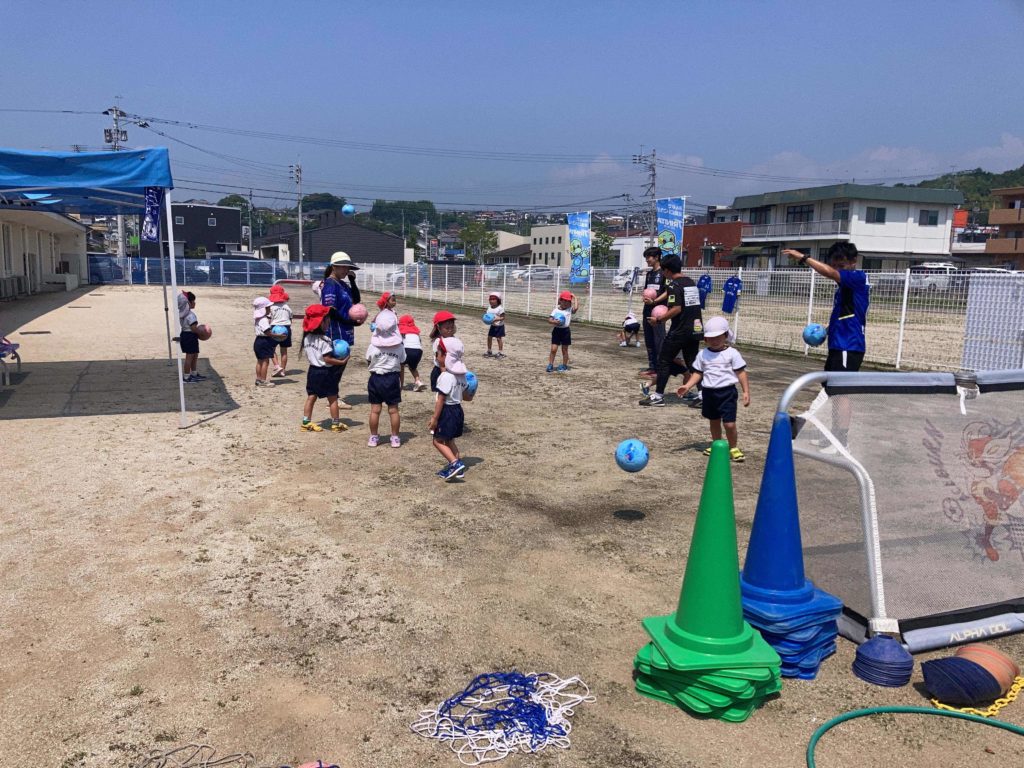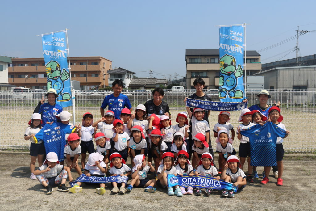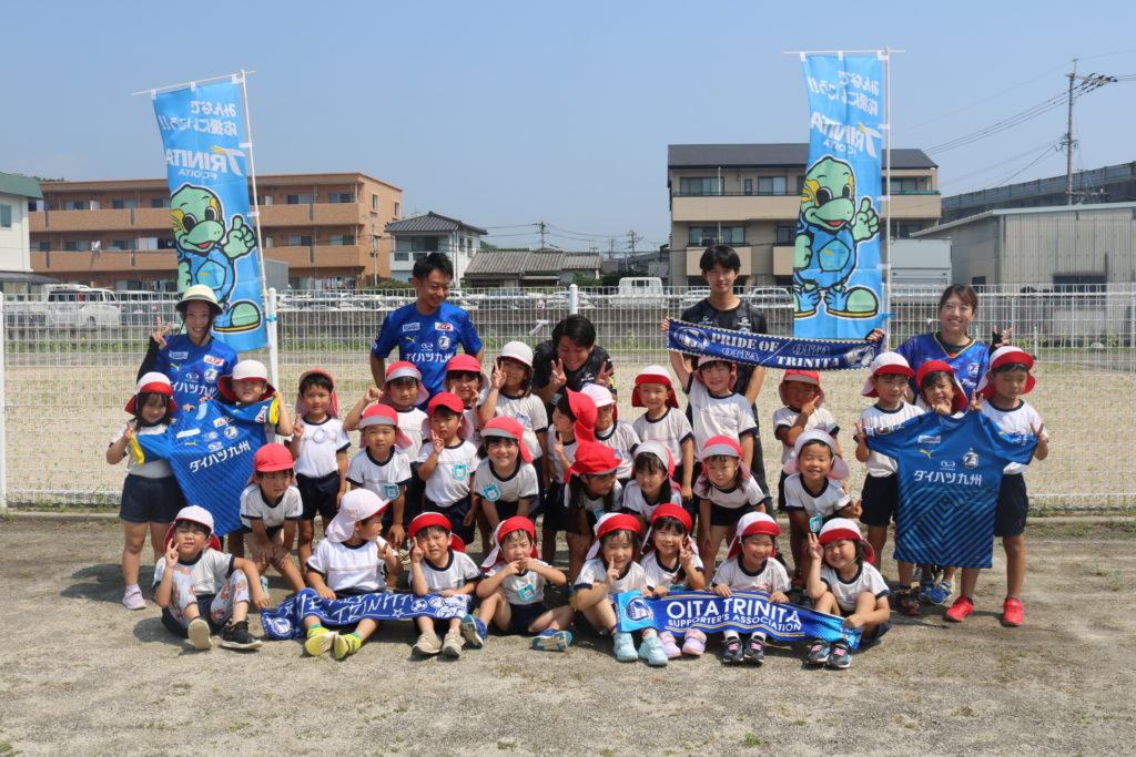 今年も大分県サッカー協会のキッズサッカー巡回指導にトリニータからスクールの指導者の方が来てくれました。サッカーはもちろんの事、サッカーをする前に、楽しく運動遊びをしながら体を動かしていきながら、今度はボールに触れ合いながら遊んでいきました。試合になると、子ども達は円陣をくみチームごとに「勝つぞー!!おおー!!」と大きな声を出して意気込んでいましたよ★たくさんボールを追いかけて、ゴールもよく決めていた子ども達でした。体を気持ち良く動かして楽しんだ子ども達です。このような活動を通してスポーツの楽しさや地元大分のプロチーム、トリニータをはじめとするスポーツの振興に少しでもつなげ、大分が盛り上がれるきっかけにもなれればと思います!
