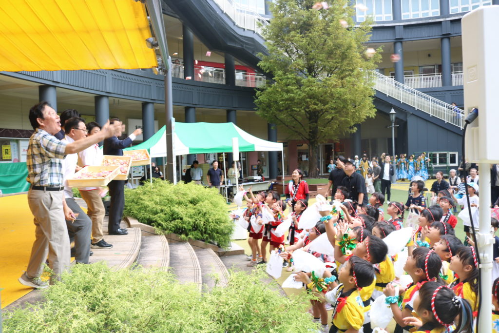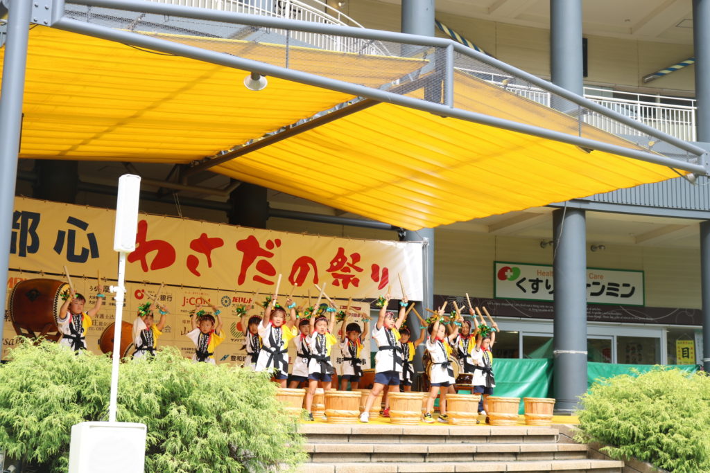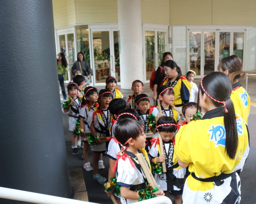 稙田元気太鼓 稙田タウンのフェスタ広場で元気太鼓を披露してきました。バチを力強く握り腕をまっすぐ振り下ろし太鼓をたたく姿は皆かっこよくきまっており、動きもよく揃っていました!姉妹園合同の「どんぐりころころ」の手話も可愛く上手にできていましたよ♥沢山の方に応援していだだき、大きな拍手ももらう事も出来、皆で楽しく元気太鼓を披露する事が出来ました。 お菓子まき! 元気一杯!元気太鼓! 一覧へ戻る