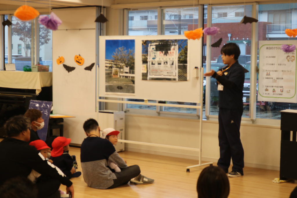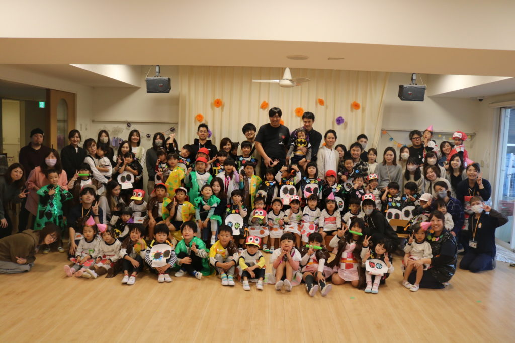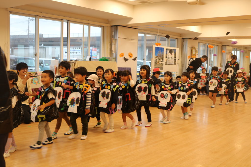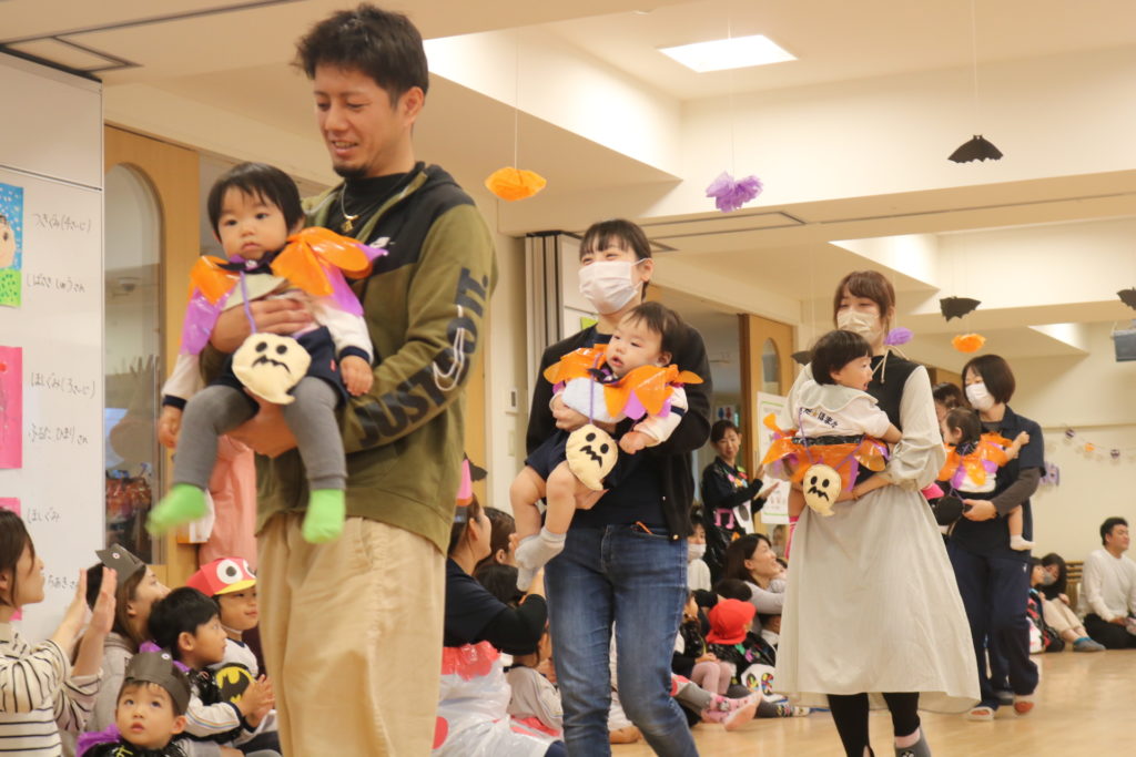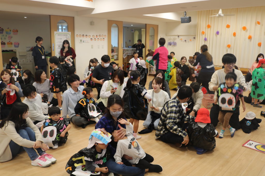 あいにくの天気により、園内になってしまった秋の親子遠足です。この遠足には今回、防災とハロウィンを組み込んで行いました。もし、災害が起きた場合、どこに避難するのか、避難場所の写真をみながら、子ども達と保護者の方達と確認をしていきました。今後も災害に備えてのお話や訓練を重ねていき、いざという時に命を守れる行動がとれるようにしていきたいと思います。この日はハロウィンの日という事もあり、この日の為に仮装する衣装を各クラスで準備し、お父さんお母さん達の前で衣装を披露して歩き楽しんだり、ハロウィンを題材としたマルバツゲームやダンスなどで楽しむ事が出来ました。この場をかりて絵画コンクールの表彰式も行いました。表彰されたお友達おめでとうございます✨クラス事にわかれて、日頃の様子や家庭での姿などをざっくばらんに話し合うクラス懇談会もし、 お弁当も皆で美味しく食べ、園内ではありましたが、良い園内遠足になりました。