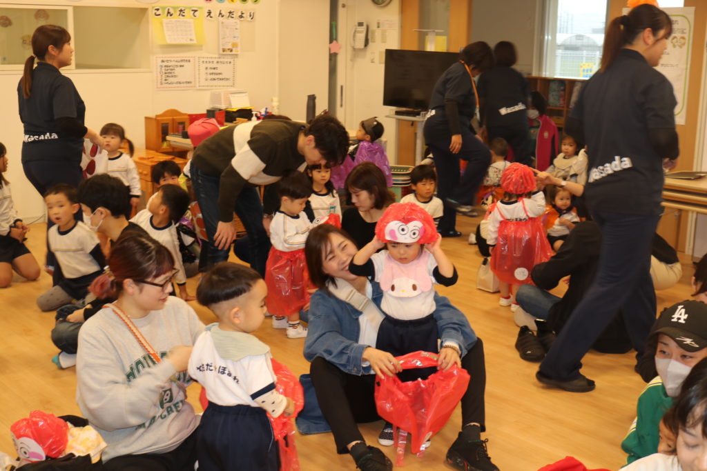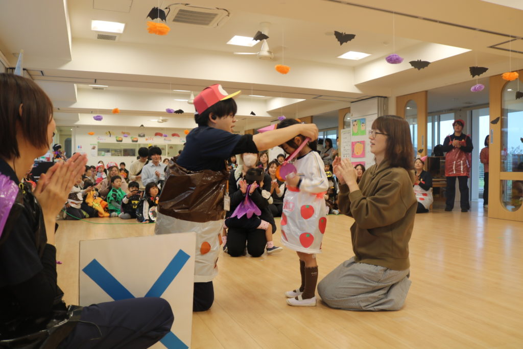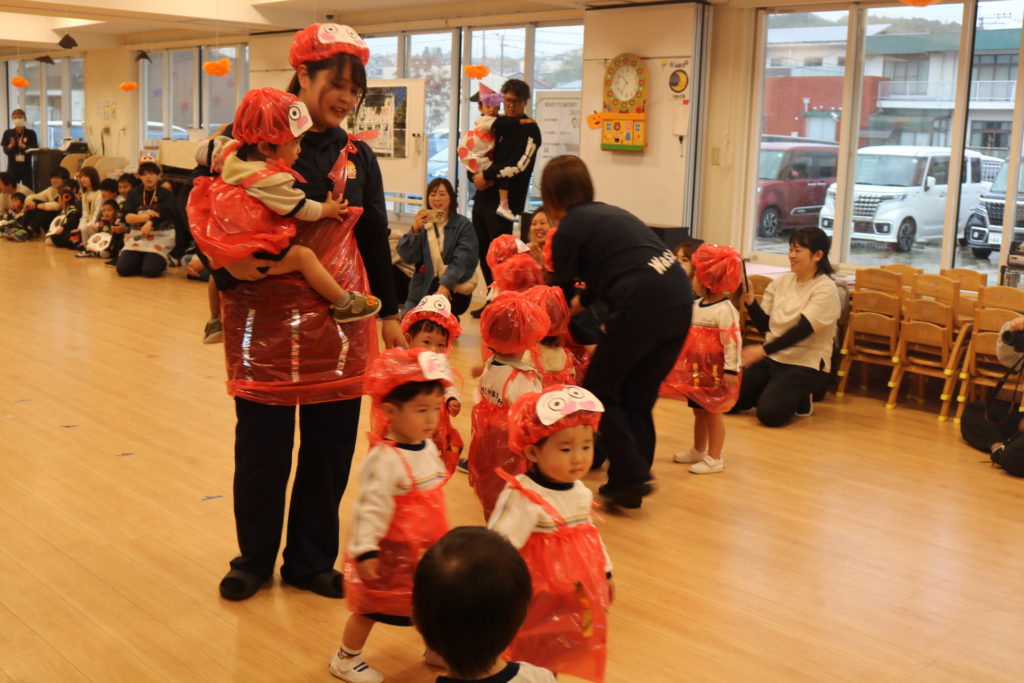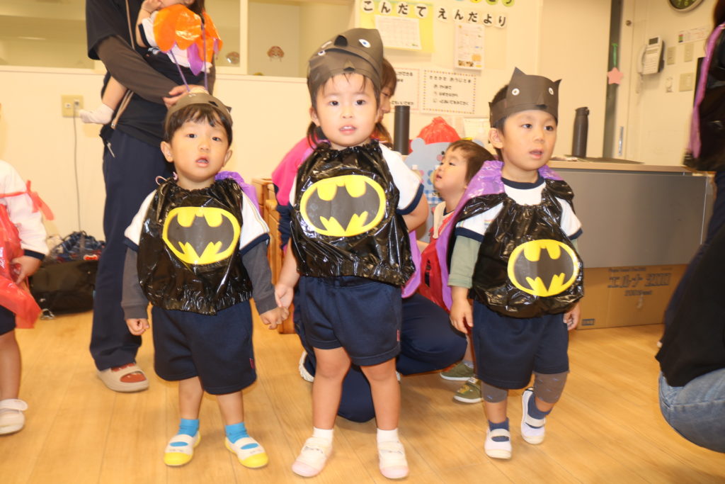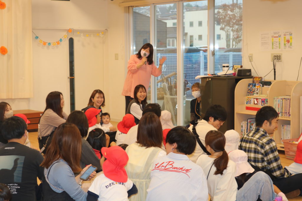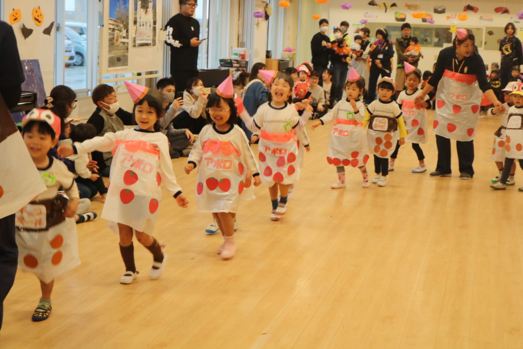 あいにくの天気により、園内になってしまった秋の親子遠足です。この遠足には今回、防災とハロウィンを組み込んで行いました。もし、災害が起きた場合、どこに避難するのか、避難場所の写真をみながら、子ども達と保護者の方達と確認をしていきました。今後も災害に備えてのお話や訓練を重ねていき、いざという時に命を守れる行動がとれるようにしていきたいと思います。この日はハロウィンの日という事もあり、この日の為に仮装する衣装を各クラスで準備し、お父さんお母さん達の前で衣装を披露して歩き楽しんだり、ハロウィンを題材としたマルバツゲームやダンスなどで楽しむ事が出来ました。この場をかりて絵画コンクールの表彰式も行いました。表彰されたお友達おめでとうございます✨クラス事にわかれて、日頃の様子や家庭での姿などをざっくばらんに話し合うクラス懇談会もし、 お弁当も皆で美味しく食べ、園内ではありましたが、良い園内遠足になりました。