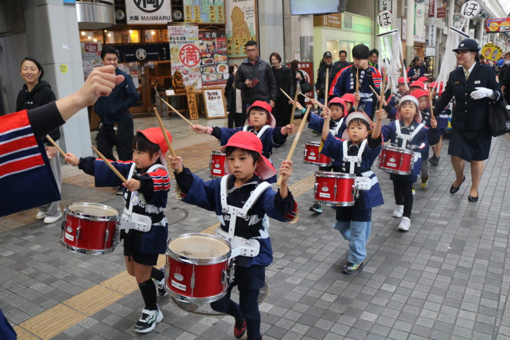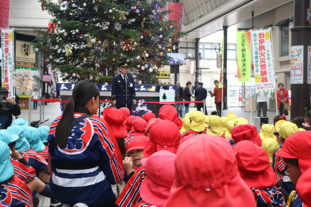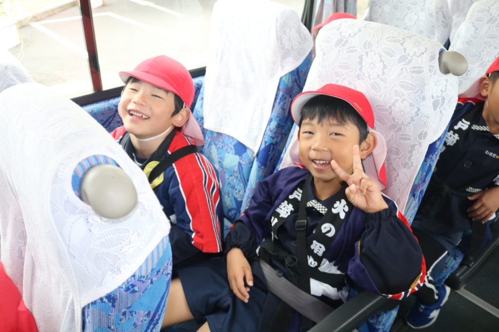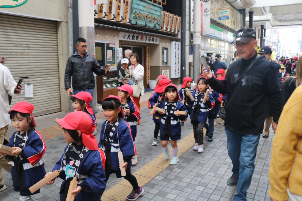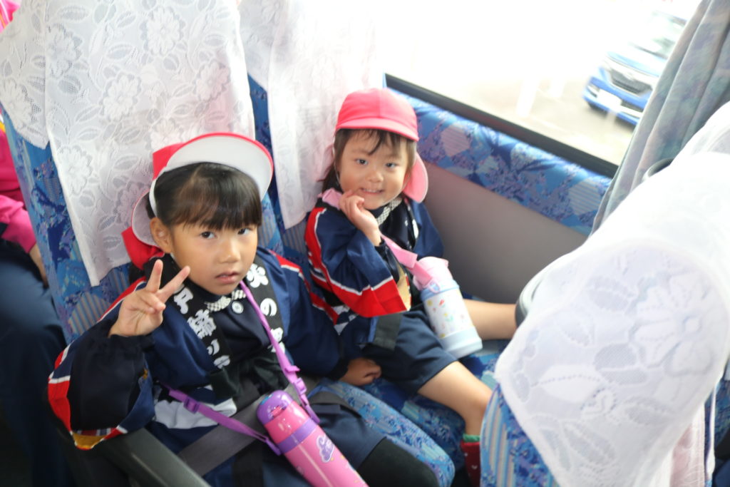 大型バスに乗って!年中さん、年長さんが防火パレードに行って来ました!!大分の町、竹町商店街の中を鼓笛でパレードしながら火災予防や火の取り扱いに気を付ける事を呼びかけていきました。年長さんは、太鼓や大太鼓、シンバルン、まといなどを上手に振りながら、年中さんは拍子木を叩きながら、大きな声で「火の用心」と呼びかけてまわりました。子ども達のこういった活動で少しでも火災の予防に繋がってくれると嬉しく思います。テレビ取材も受けており、可愛く受け答えをしていた年長さんです。日頃の保育の中でも、こういったお話をし、災害、防災などの意識を高めていきたいと思います。