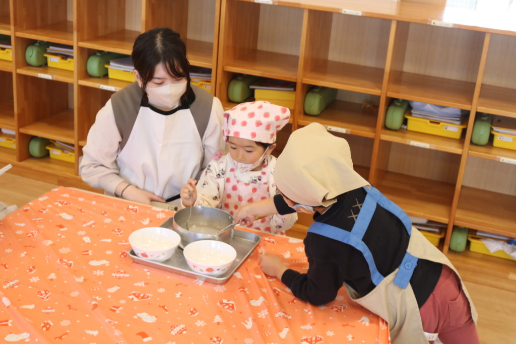まずは、水飴作り!!よく混ぜて、混ぜて!