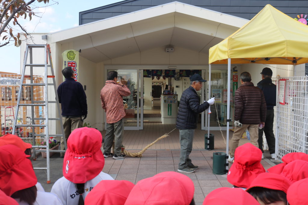 しめなわ 早いもので年末になり、今年も自治会長さんをはじめ、地域の方が立派なしめ縄を持ってきてくれました。それを、園の玄関に付けてく新年を迎える準備が出来てきました。来年も良い年になりますように、子ども達と願いを込めて、今年を締めくくりたいと思います。自治会の方々、どうもありがとうございました。 立派なしめ縄です! 来年も良い年になりますように! しめ縄、ありがとうございました! 一覧へ戻る