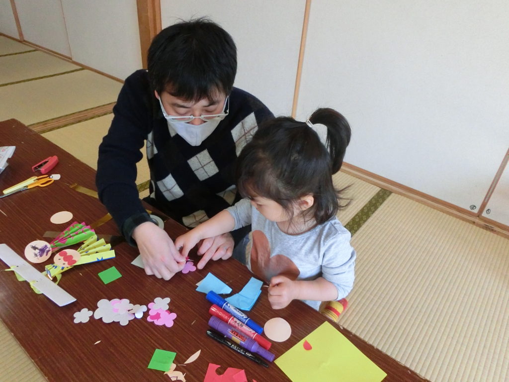 家庭教育学級 ひまわり 2月6日に上宗方公民館にて、家庭教育学級 ひまわりを開催しました。 3月のひなまつりを前に、お雛様の製作をしました。 まず、最初は自己紹介をしました。 ちょっぴり恥ずかしそうにする子どももいました。 次はおひなさま製作に取り組みました。 好きな色の折り紙などを選び、思い思いに可愛らしいひな人形を作りました。 出来上がって ハイ☆ポーズ!! 楽しい時間となりました。 一覧へ戻る