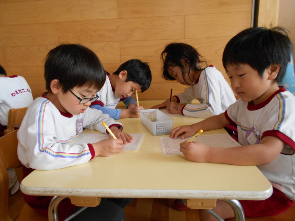 5歳児 ぶどう組の子ども達はこども園での最後のかきかた教室となりました。