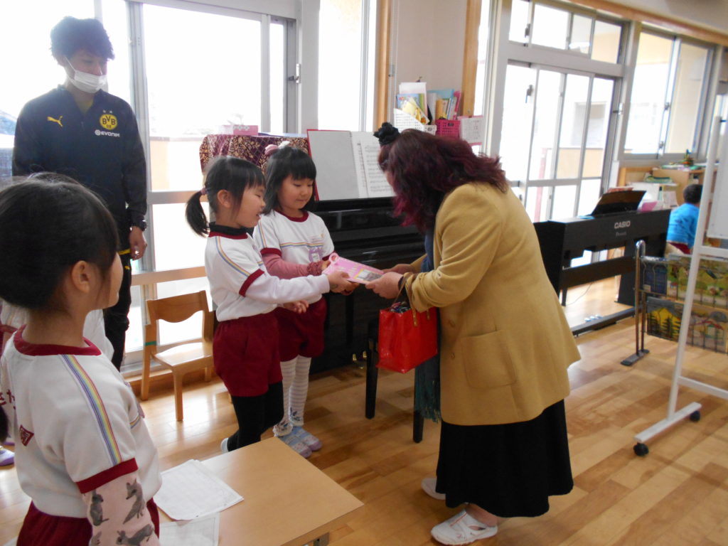 ひさこ先生から小学校に行っても頑張ってねと言っていただき、子どもたちもとっても嬉しそうな笑顔でした。