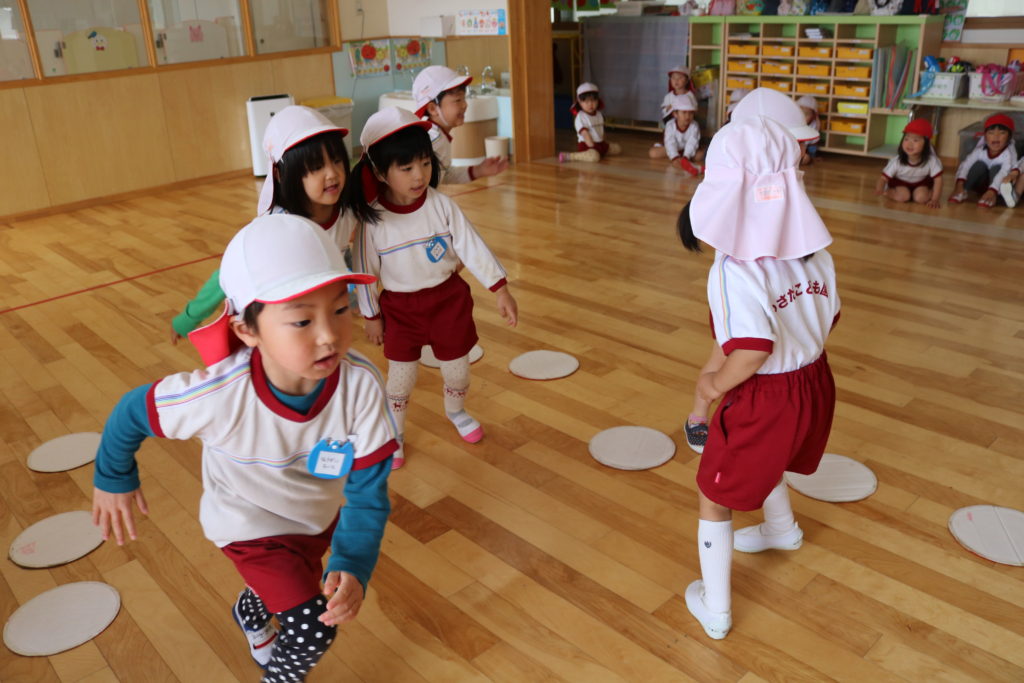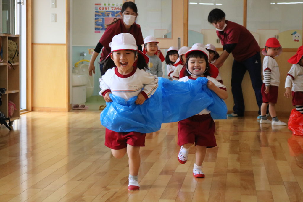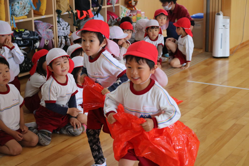 3.4.5歳児クラスの子ども達は、大判オセロやデカパン競争を楽しみました。