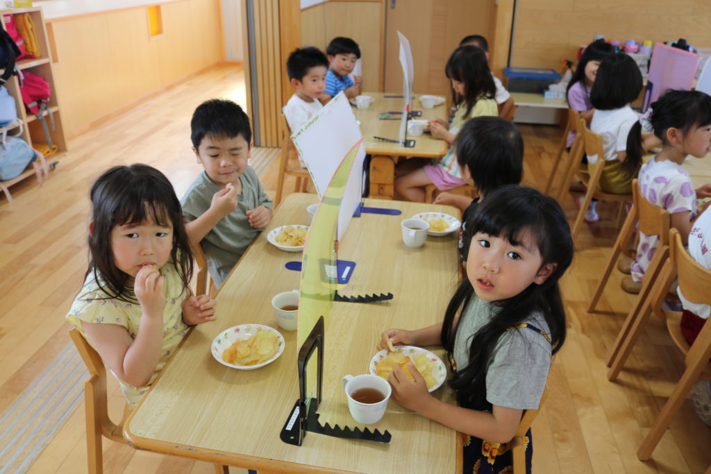 ポテトチップス この前、収穫したじゃがいもをおやつにポテトチップスにしてもらい、みんなで食べました。 『みんなで掘ったじゃがいも!!おいしい!!』と言う声が聞こえました。みんなで収穫し食べる喜びを感じました。 これから、夏に向けて収穫も増えてくるので、みんなで楽しみたいと思います。 一覧へ戻る