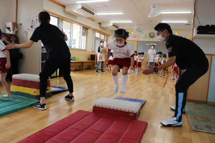 3歳、4歳、5歳児クラスで順に体操教室を行いました。