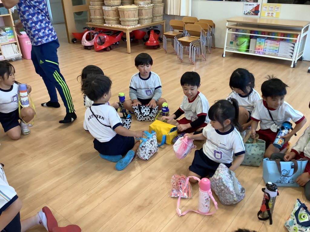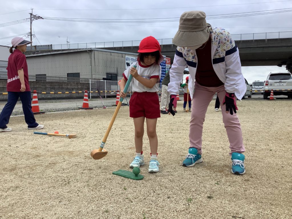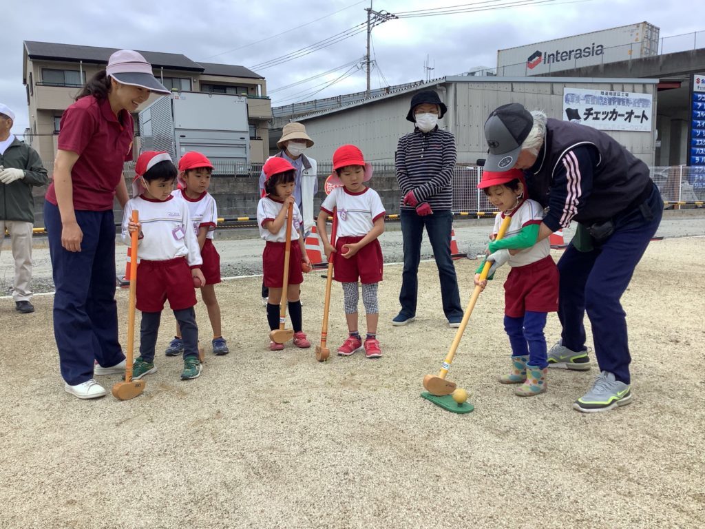 グランドゴルフ 5月28日(火)に姉妹園の稙田ほまれこども園に行き、自治会の方と一緒にグランドゴルフに参加しました。 おじいちゃん、おばあちゃん達から優しくグランドゴルフのルールや仕方を教わり、グランドゴルフに楽しく参加する事が出来ました。 グランドゴルフの後は、ほまれこども園のお友だちと自己紹介をお互いにして、一緒に話をしながらお弁当を食べました。 たくさんの笑顔が見られた交流会になりました。 一覧へ戻る