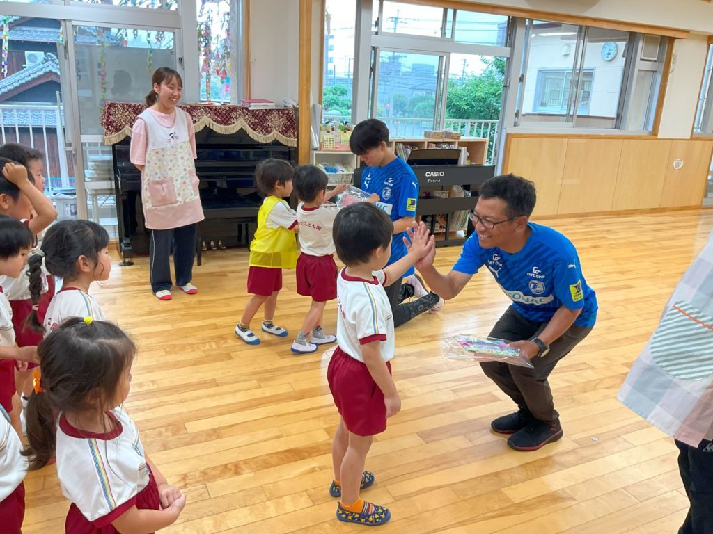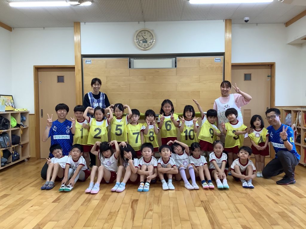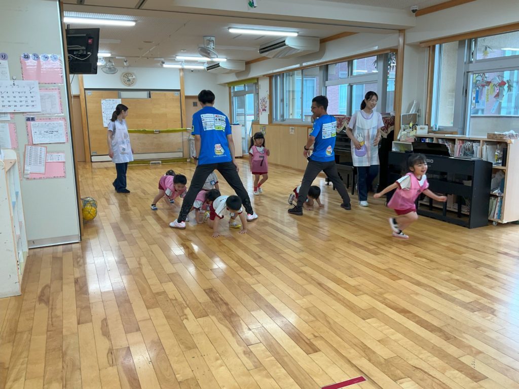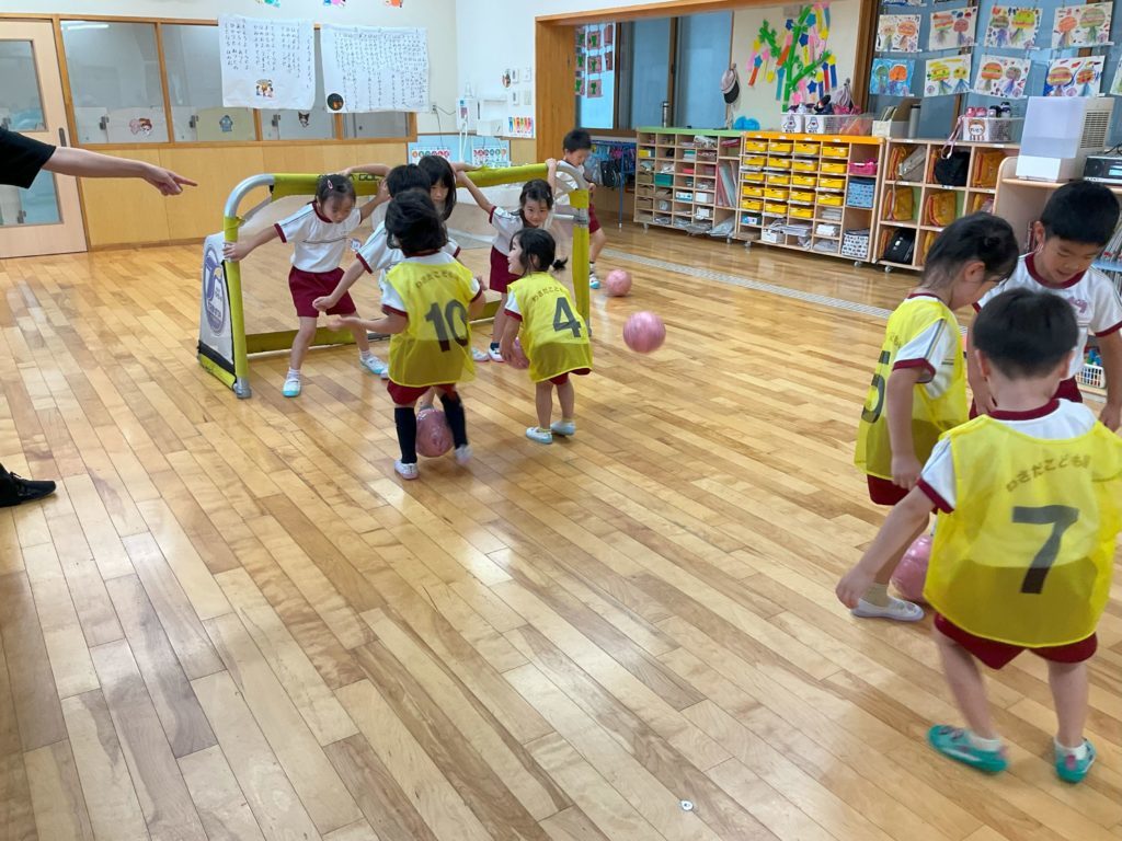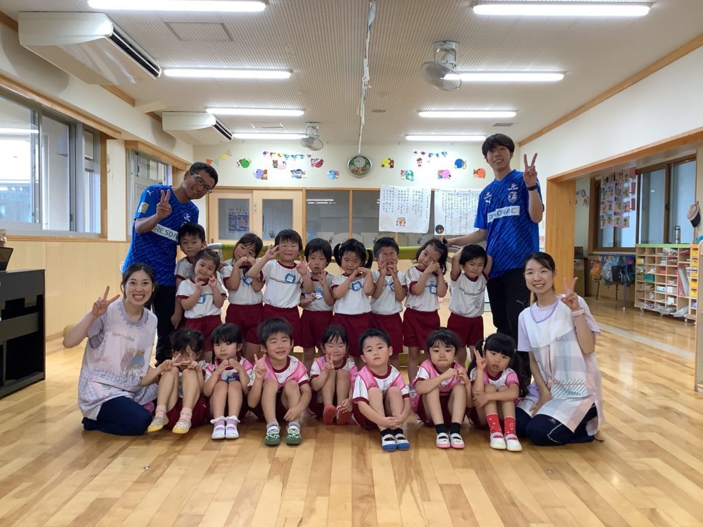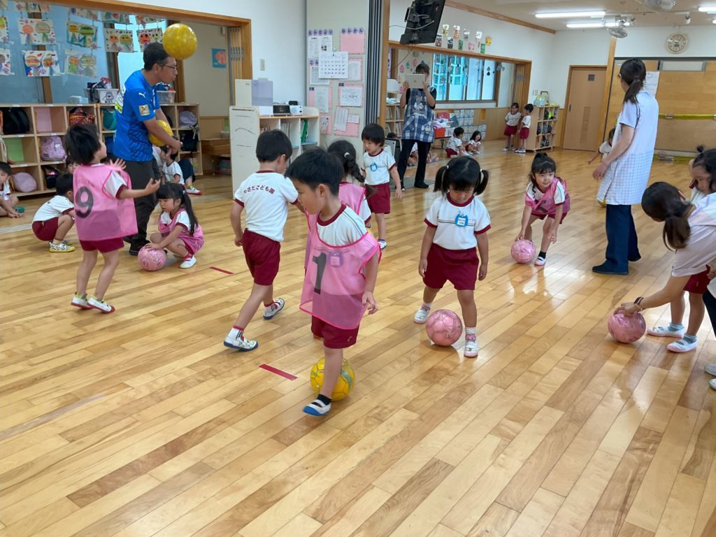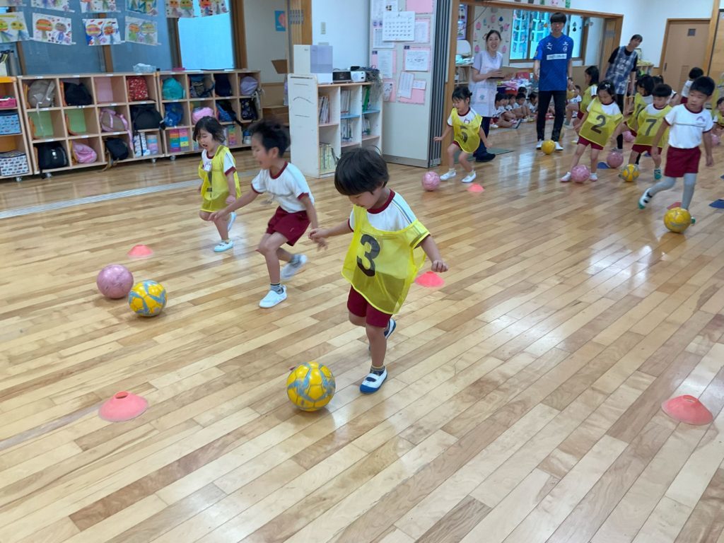 トリニータのスクールのコーチが2名来てくれ、4.5歳児さんは楽しく運動遊びやサッカーを教えてもらいました。