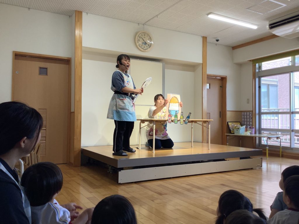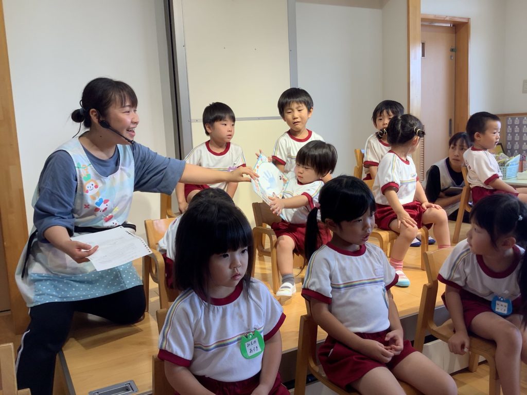 8月の誕生日会 8月7日(水)、今日は8月の誕生日会がありました。今月は13名の子ども達が誕生日を迎えます。 保育教諭からのインタビューやお友だちからの質問に、恥ずかしそうにしながらも答えていました。 インタビューの後は、お楽しみの出し物タイム。今日はかき氷シアターがあり、興味津々に見入っている子ども達でした。 8月生まれのお友だち お誕生日おめでとう!! 一覧へ戻る