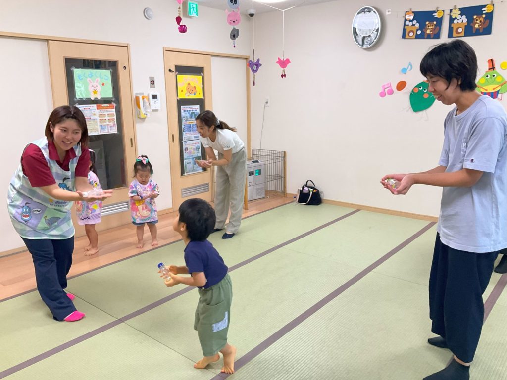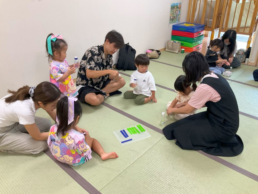最後に「お友だちとお散歩♪」のリズムに合わせて、みんなで座布団取りゲームをして遊びました。