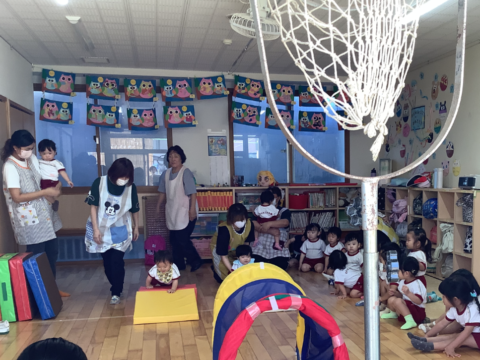 マットやトンネル遊びが大好きな子ども達。マットの丘を越え、トンネルを通って「ばあ!」と可愛い顔を見せてくれます。