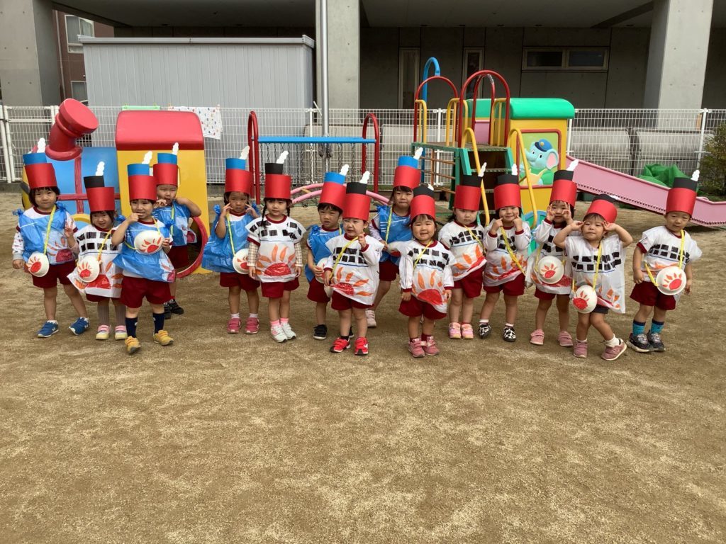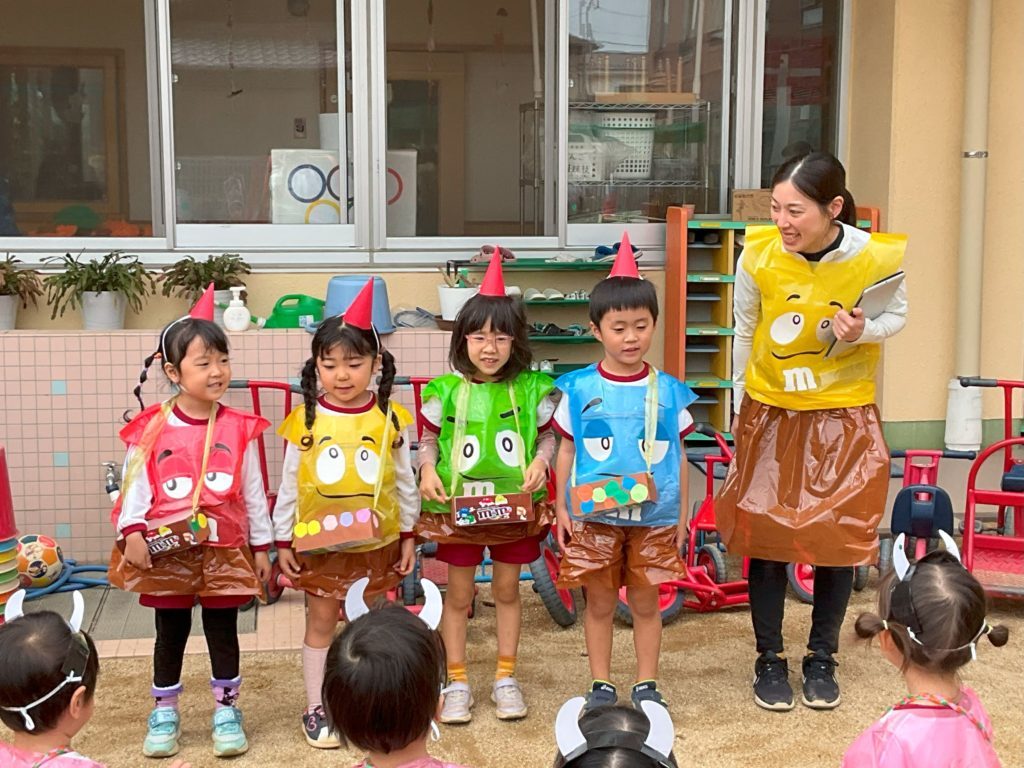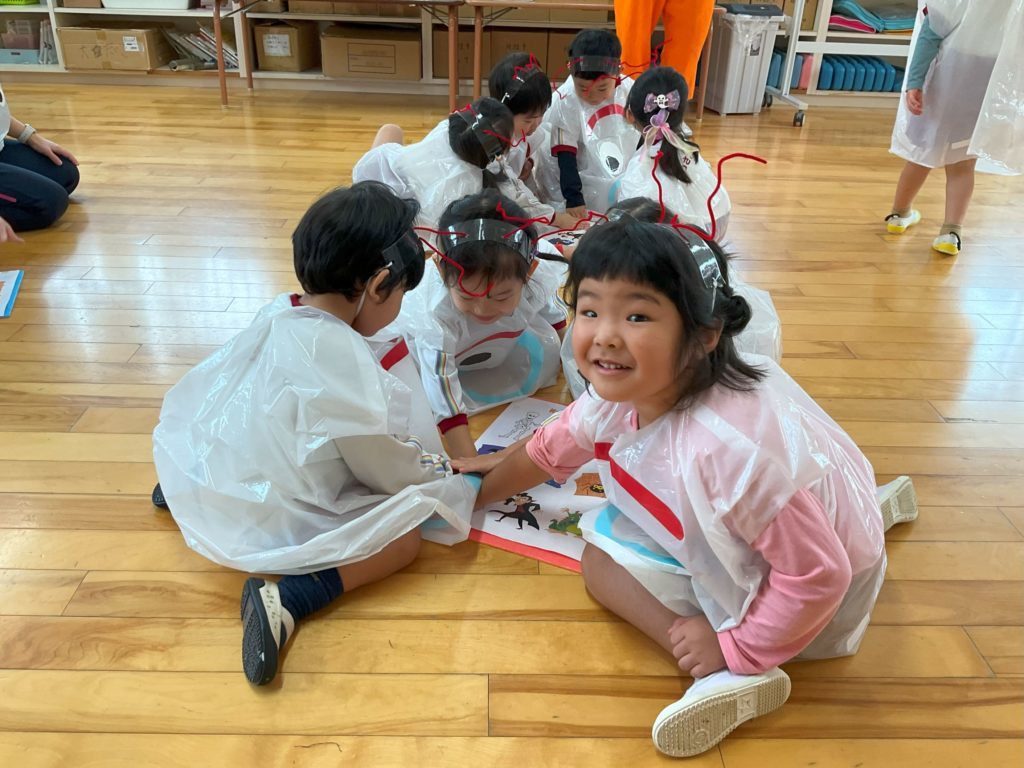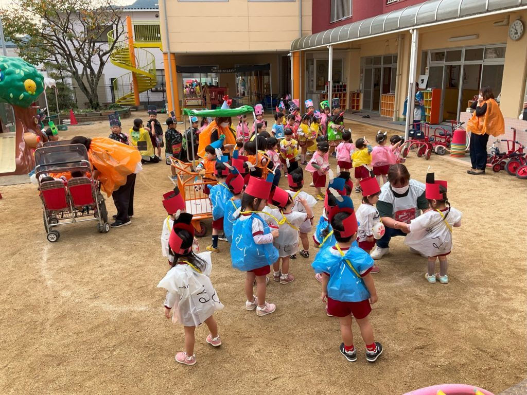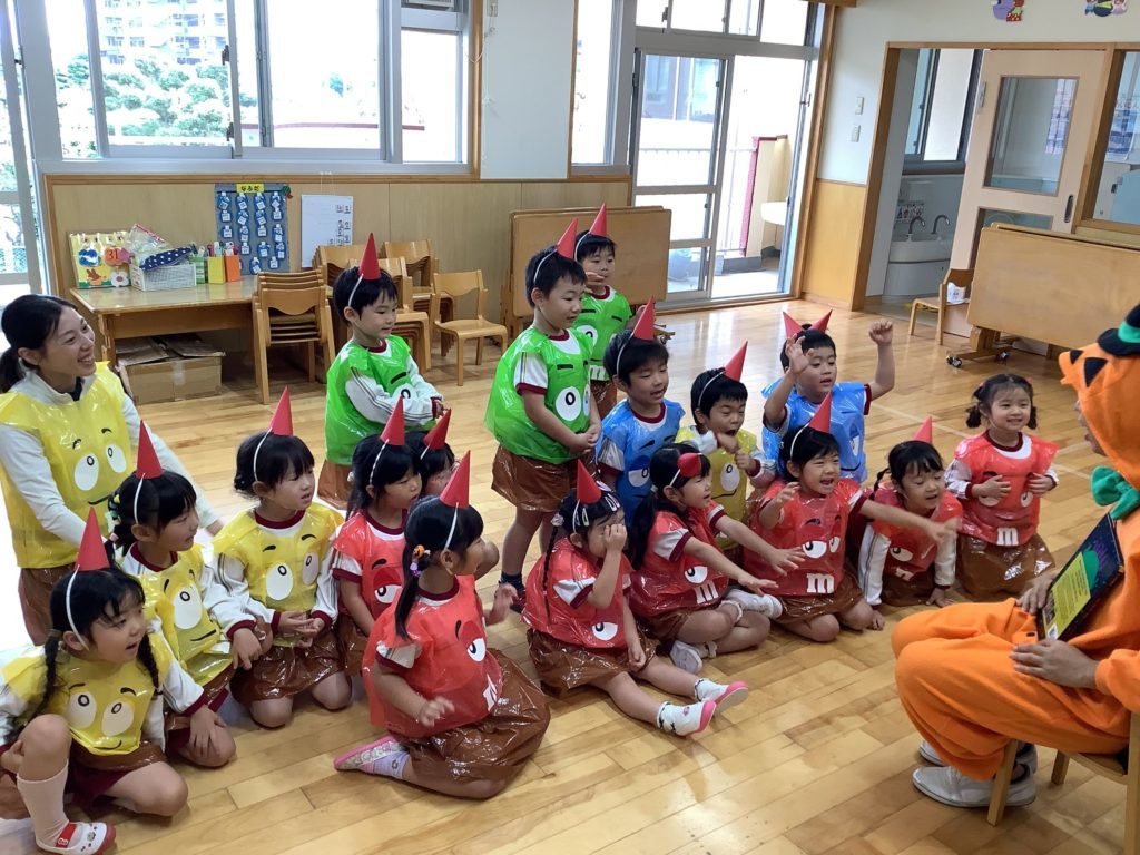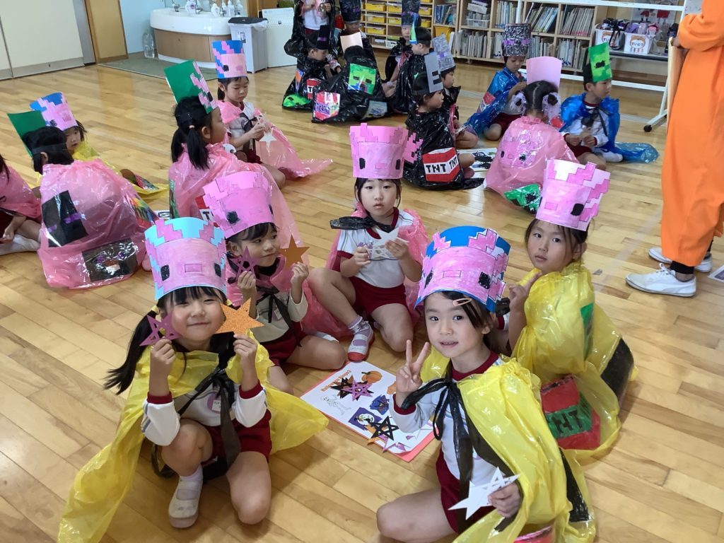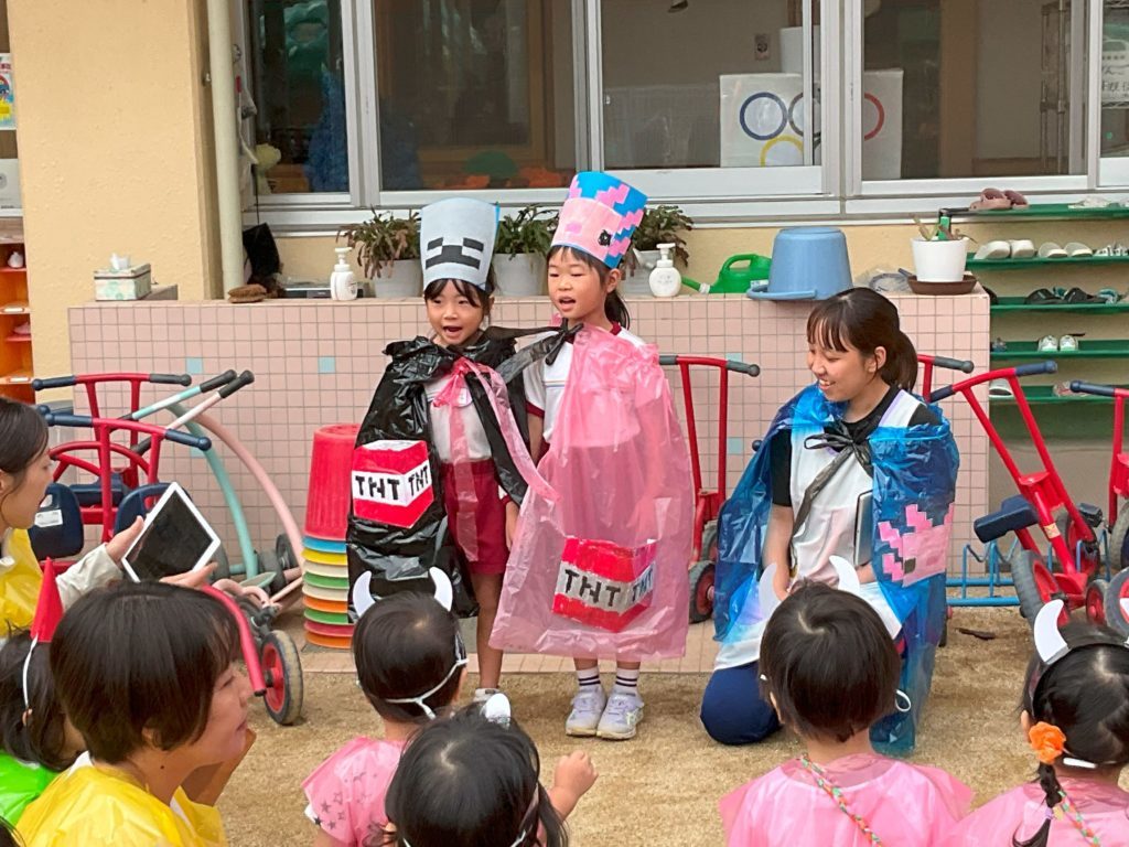 各クラス手作りの衣装を着て仮装し、衣装の紹介をしたり「お化けのばけちゃま」のダンスを踊りました。