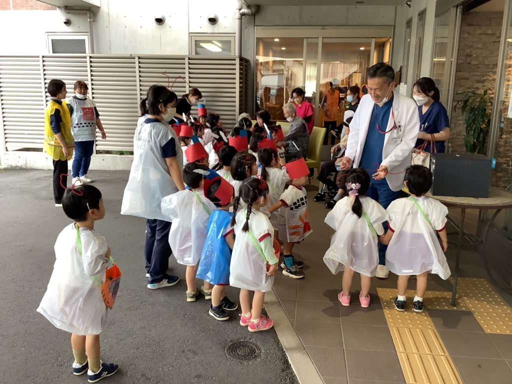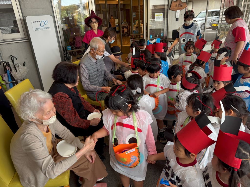 最後は仮装したまま玉光苑のおじいちゃん、おばあちゃんのところにお散歩に行きました。