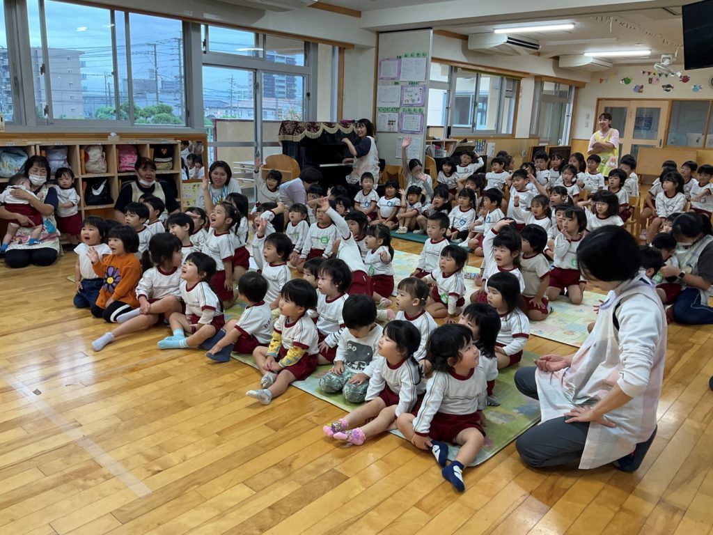 今月は7名の子ども達が誕生日を迎えます。保育教諭からインタビューやお友だちの質問に元気に答えていました。