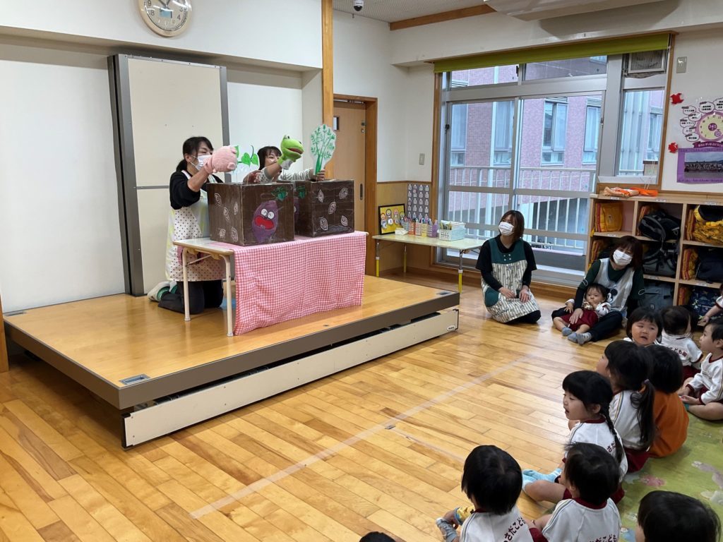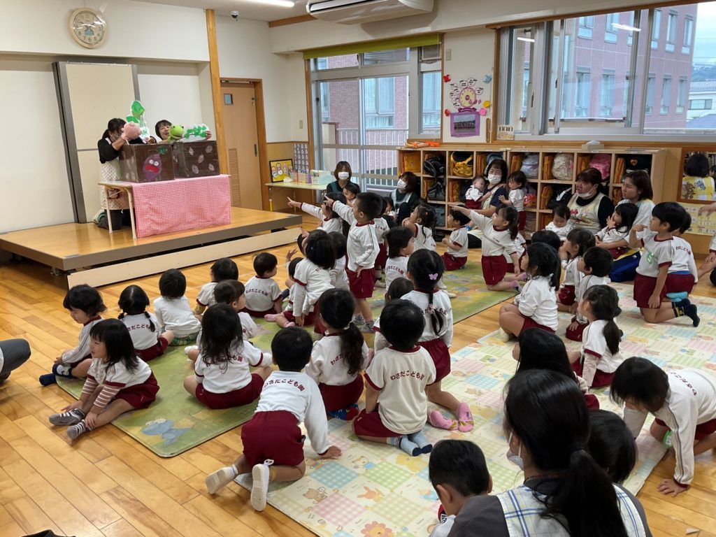 みんなでピアノの音に合わせて「うんとこしょ~どっこいしょ♪」と歌い、お芋を掘る動作を皆でして盛り上がりました。