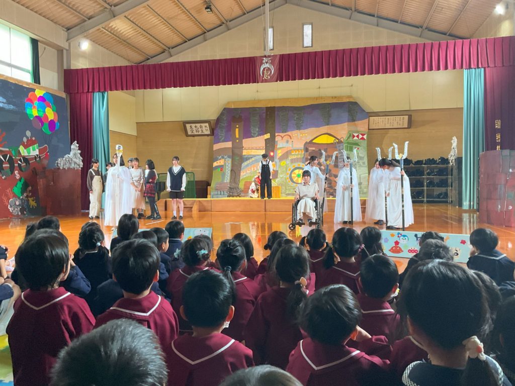 福徳の生徒さんが手遊びやパネルシアターをしてくれたり、一緒にダンスを踊ったり最後は『えんとつ町のプペル』のミュージカルを見せてくれました。