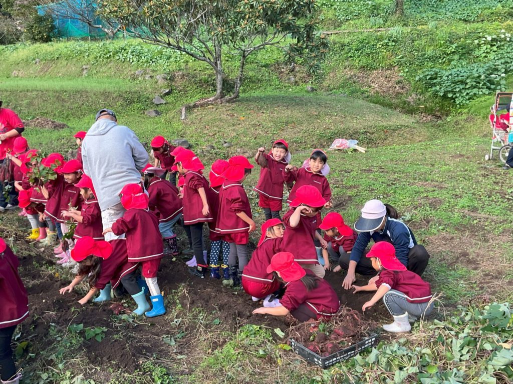 お芋ほりに行ってきました。0歳児のお友だちも見学に行き、みんなでお芋ほりをしてきました。