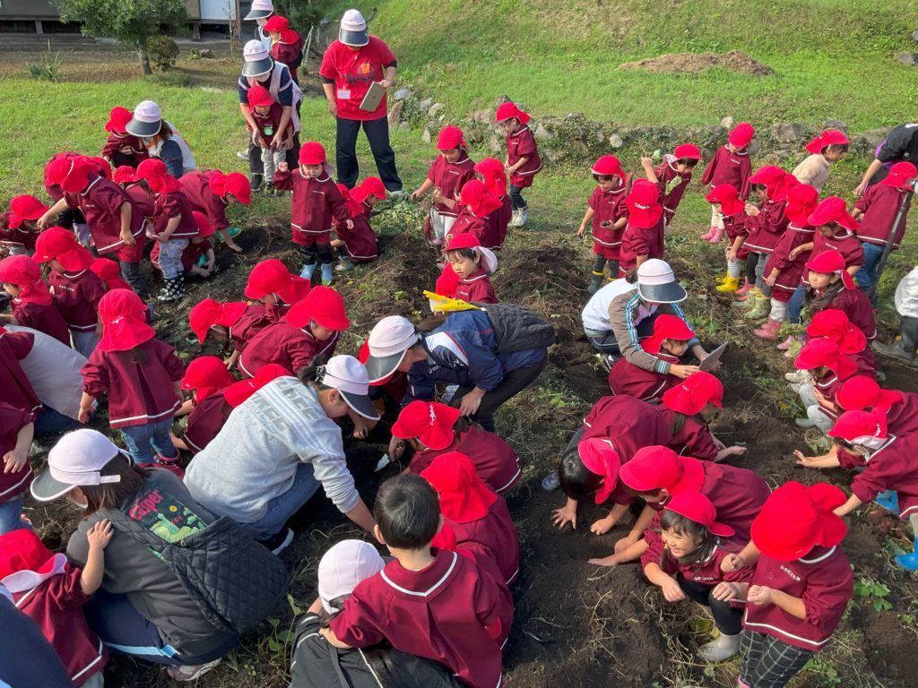 みんなで力を合わせて中には『うんとこしょ どっこいしょ』と言いながら何人かで集まって掘っている子どもたちもいましたよ。