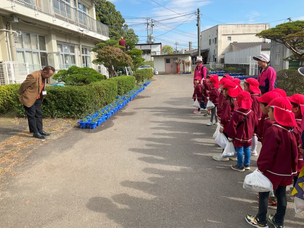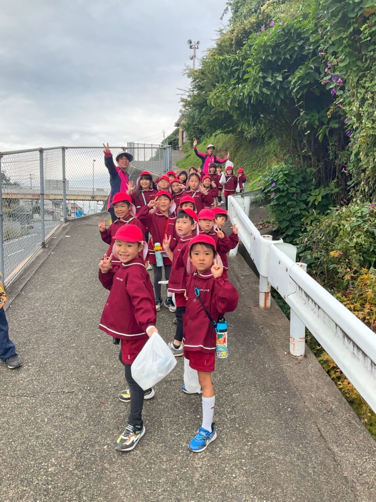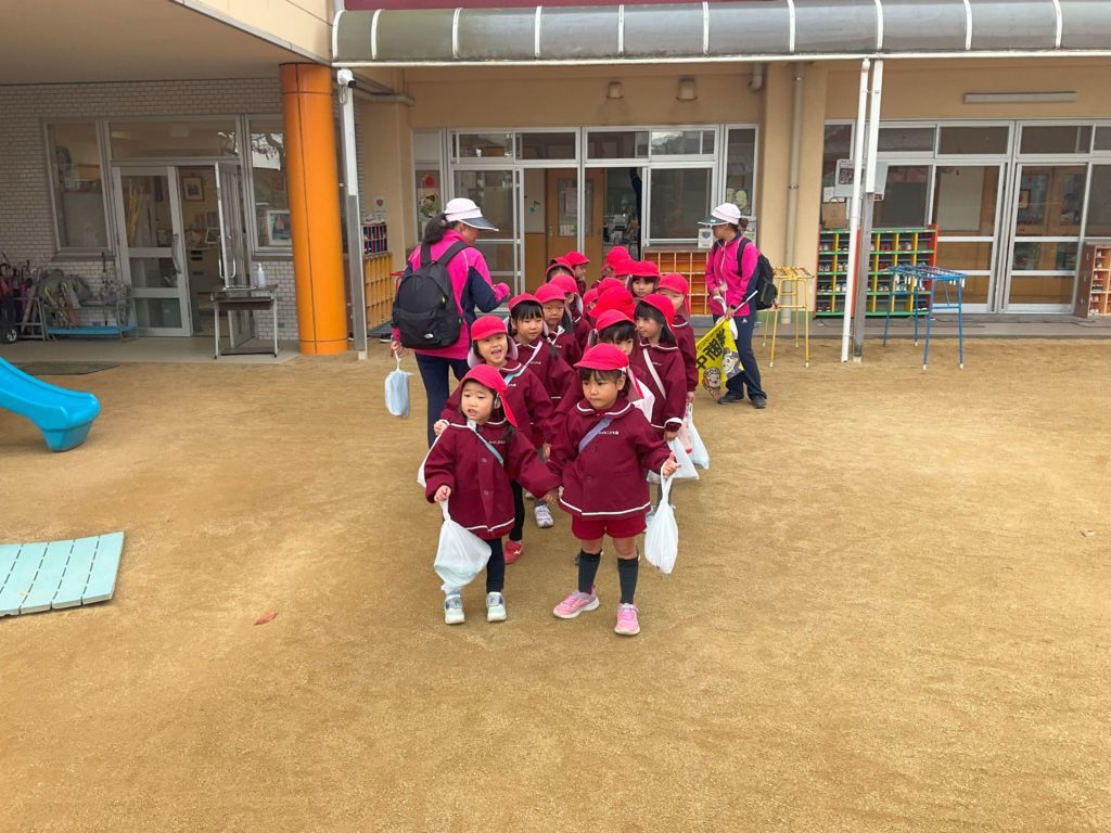 小学校への通学路を歩きながら朝の歌や季節のうたを歌ったり、「小学校で何をするのかな?」「遊具は何があるんだろー」等、楽しく話をしながら歩きました。途中狭い道や車の通りが多い箇所があり「ここは危ないから1列だ」と気を付けて歩くポイントを子ども達で確認する姿も見られました。