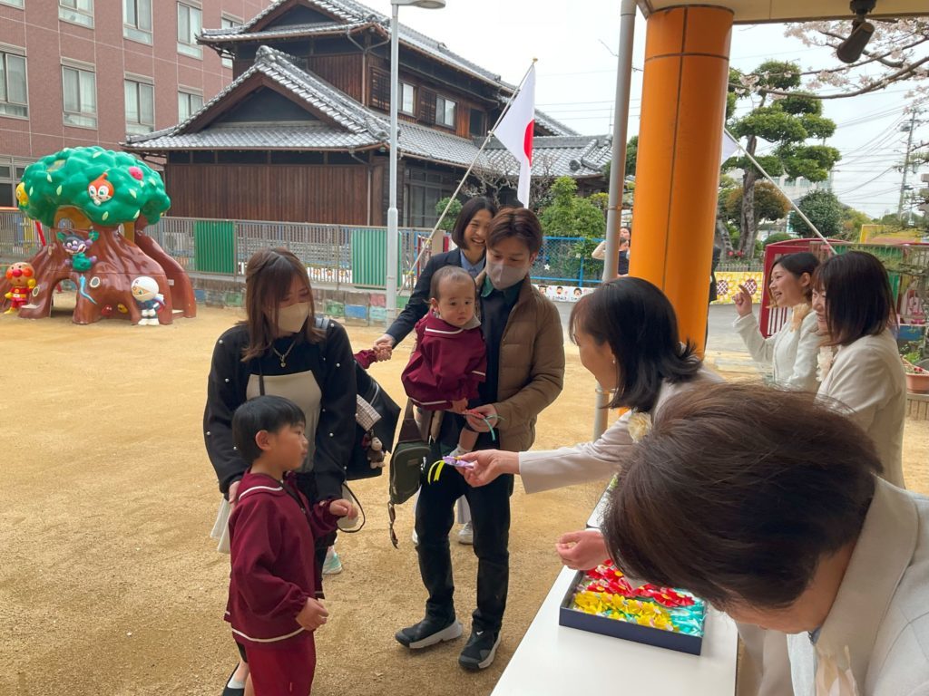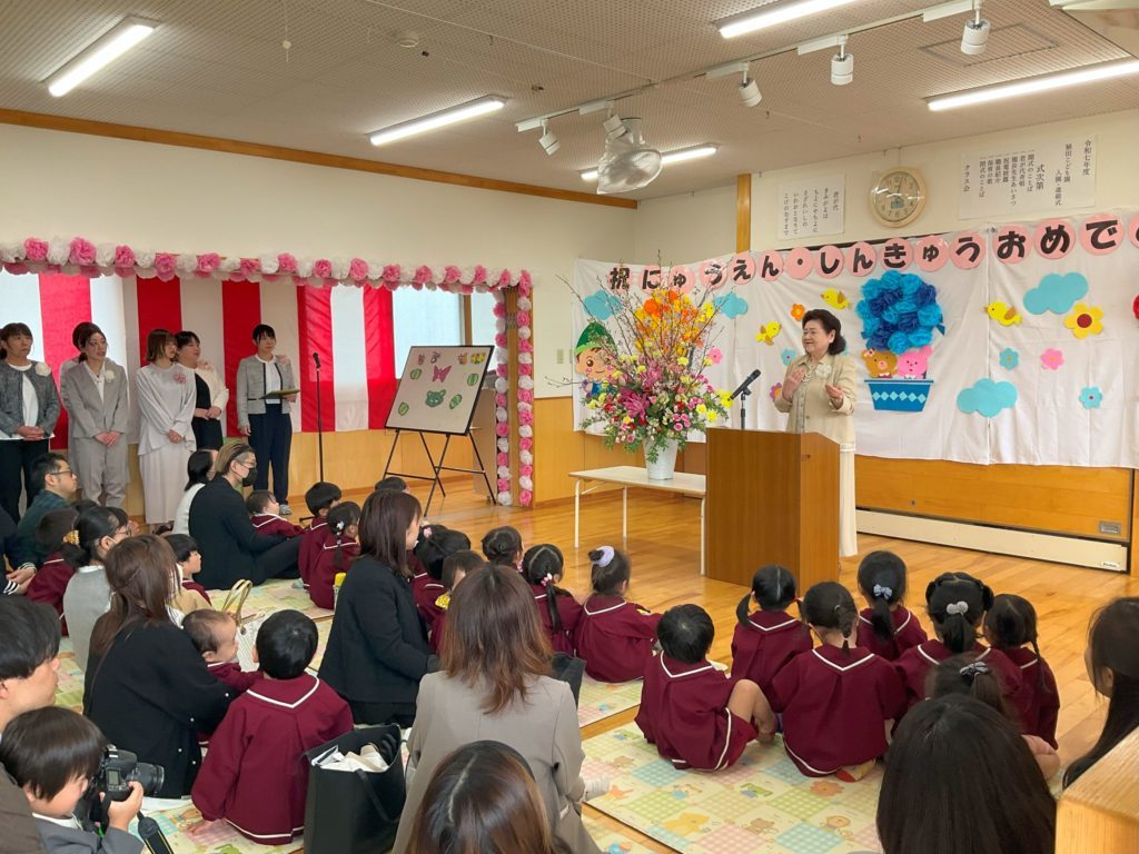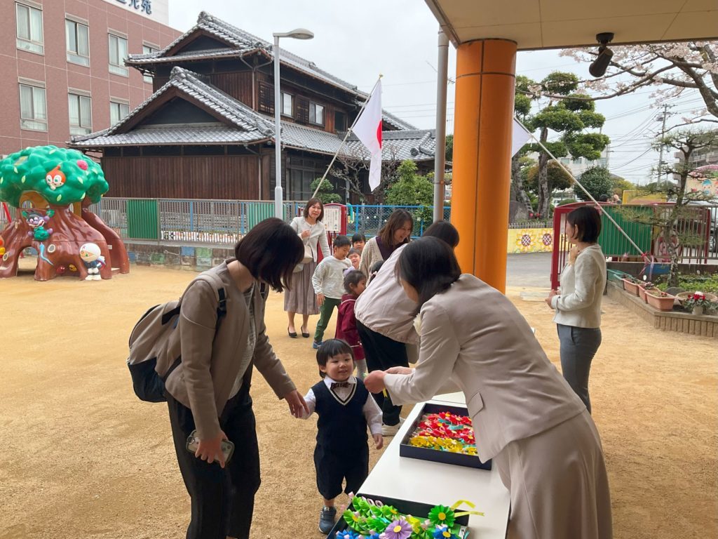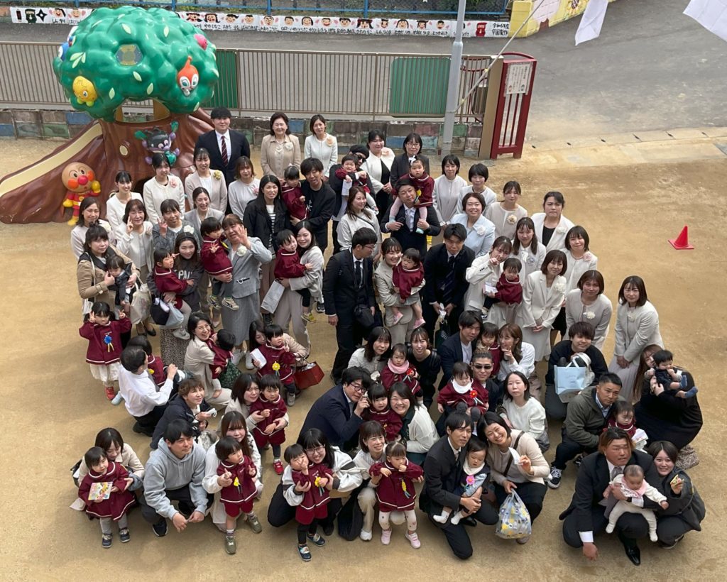 入園・進級式 天気に恵まれ、4月5日に入園・進級式を行いました。 今年度は15名の新入園児を迎えスタートです。 子どもたちに楽しい、園に行きたいと思ってもらえるように、日々 教育・保育を行っていきたいと思います。 <0.1.2歳児クラス集合写真> <3.4.5歳児集合写真> 一覧へ戻る