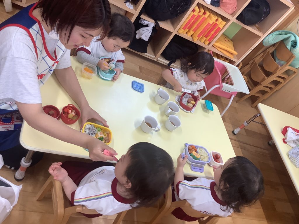 今日はお弁当日でした。今年度、初めてのお弁当日で子ども達もウキウキの様子でした。