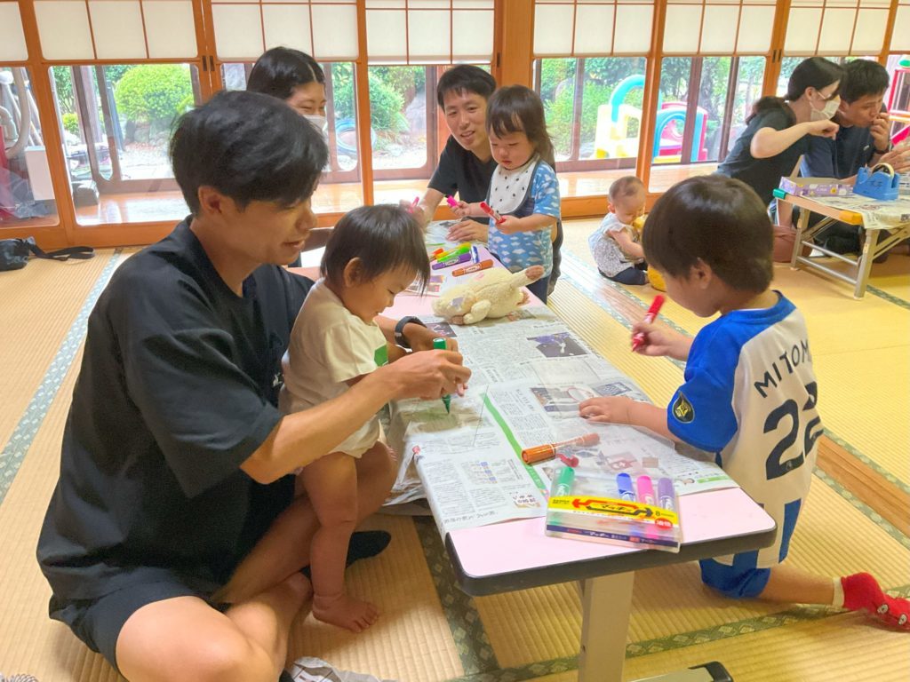 始めに体操・触れ合い遊びをして、親子で楽しそうに体を動かすことができました。